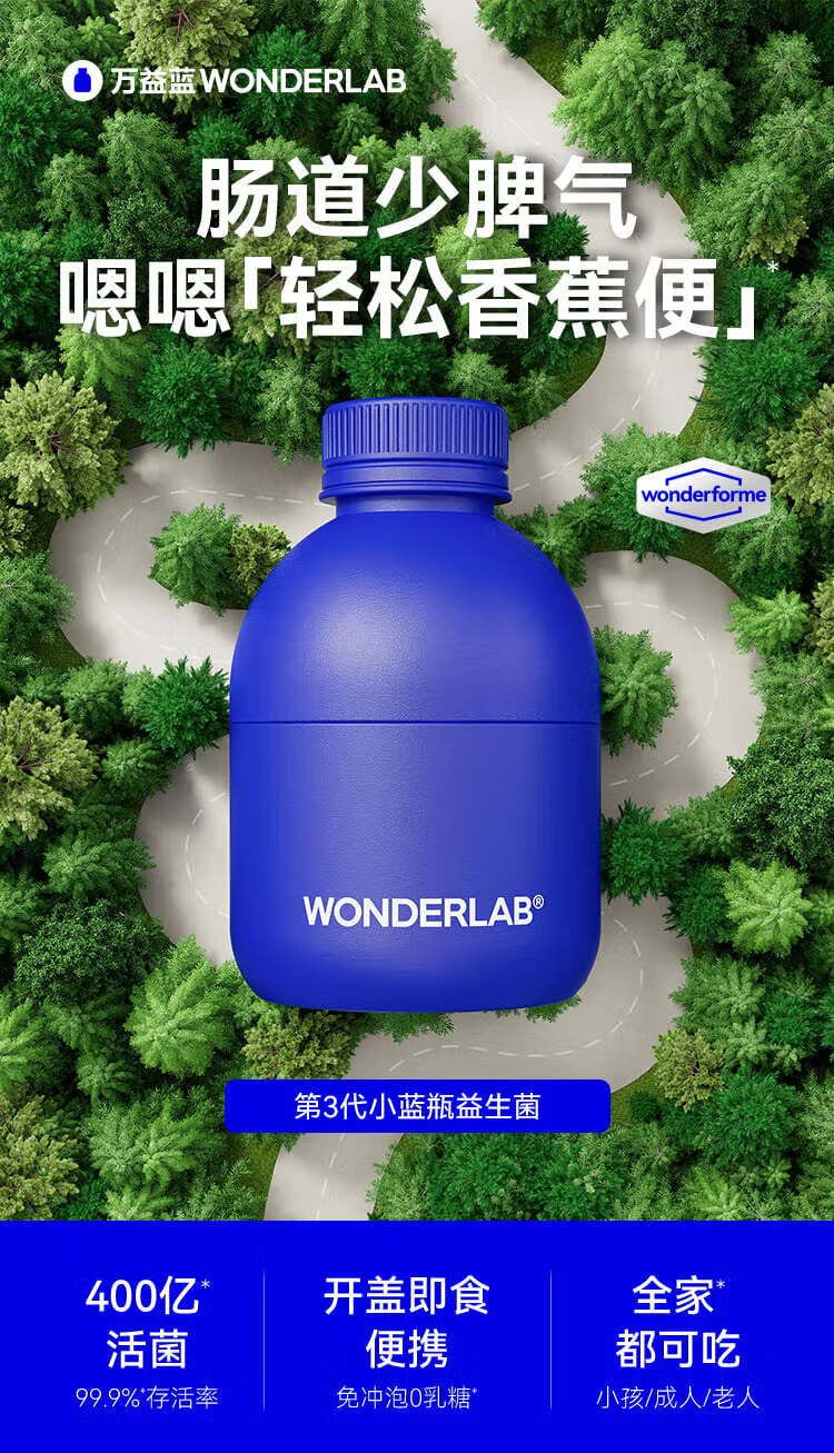 万益蓝WonderLab 小蓝瓶益生菌全家桶 双歧杆菌益生菌成人孕期肠胃益生菌调理 礼盒装180瓶3.0