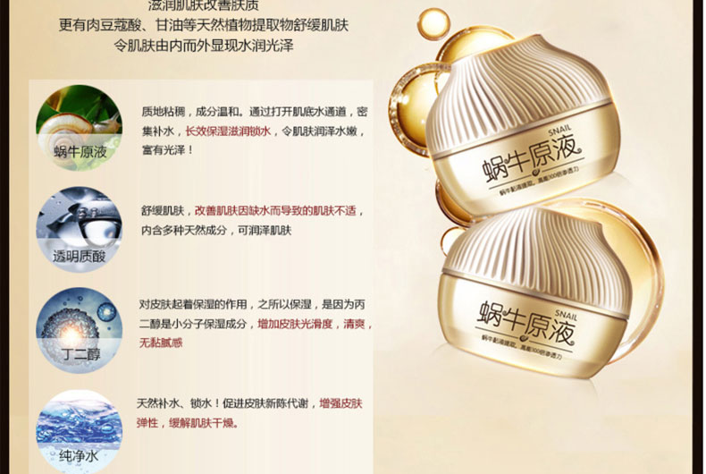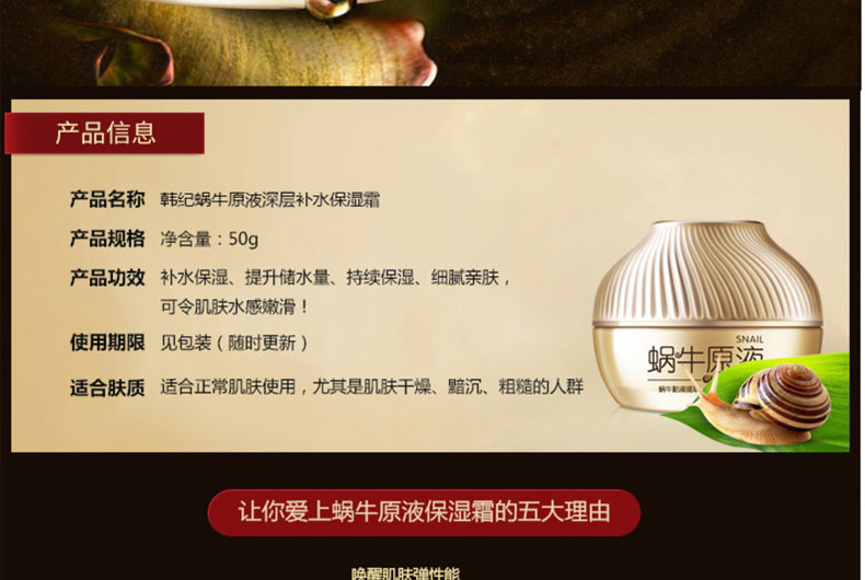 商品名称:Hankey/韩纪 蜗牛原液深层补水保湿霜 面霜 50g