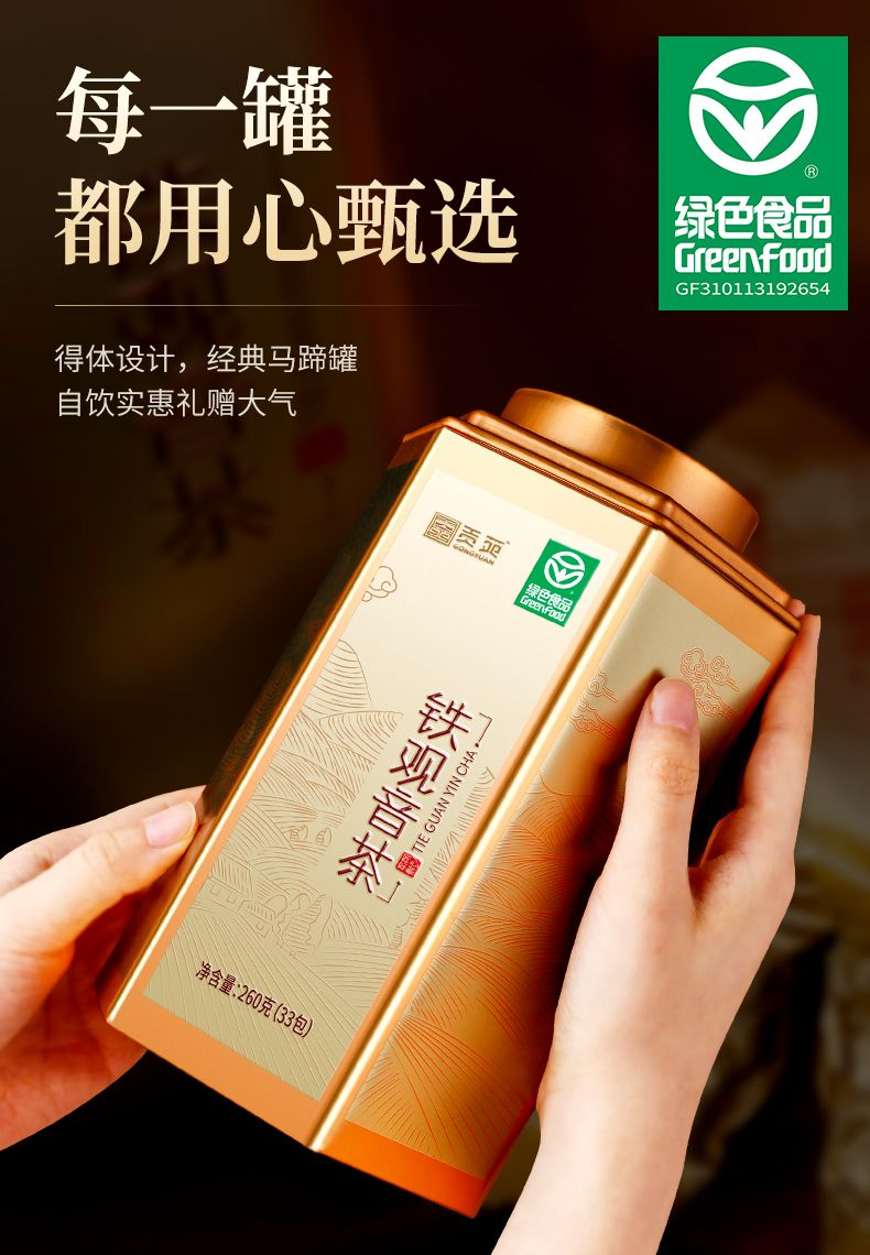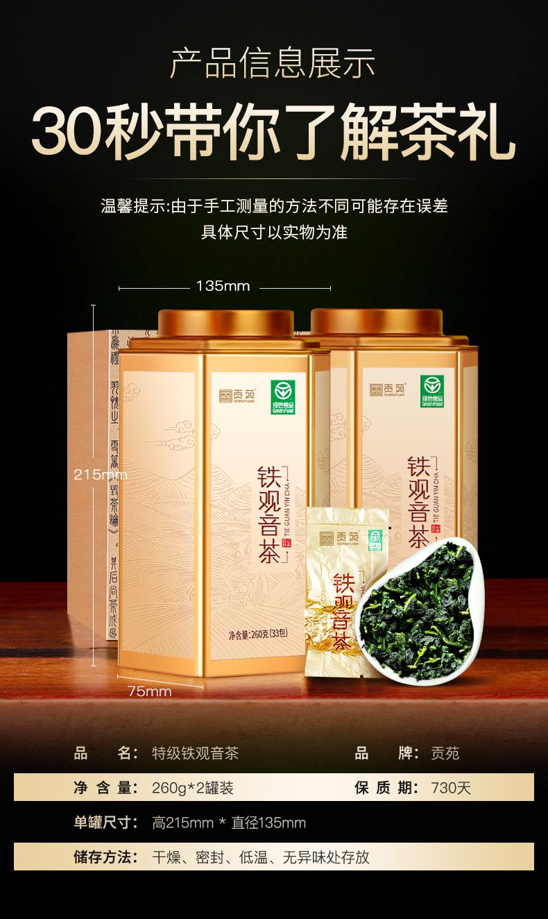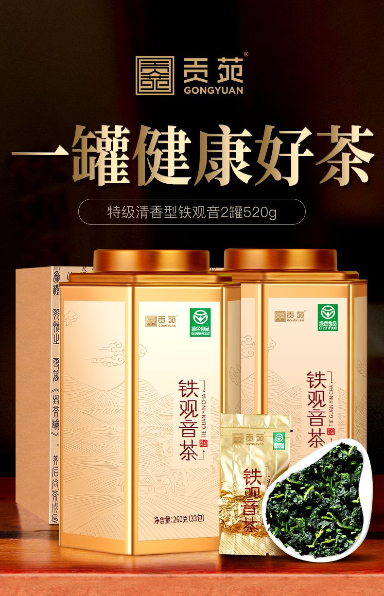 商品名称:贡苑特级清香铁观音260g*2罐装 【绿色食品】
