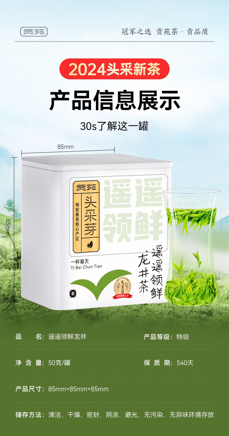 商品名称:贡苑2024年新茶头采龙井茶50g 【遥遥领鲜】
