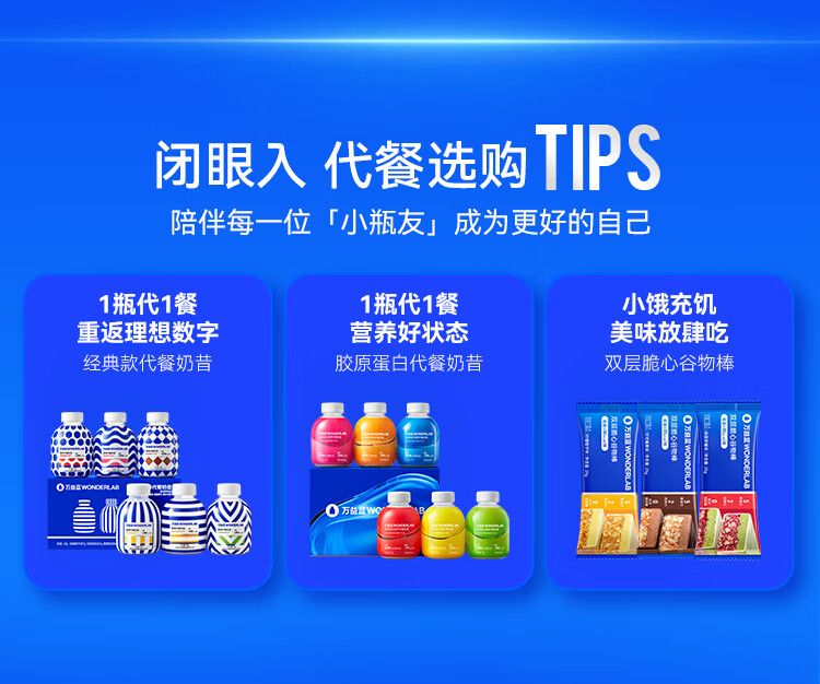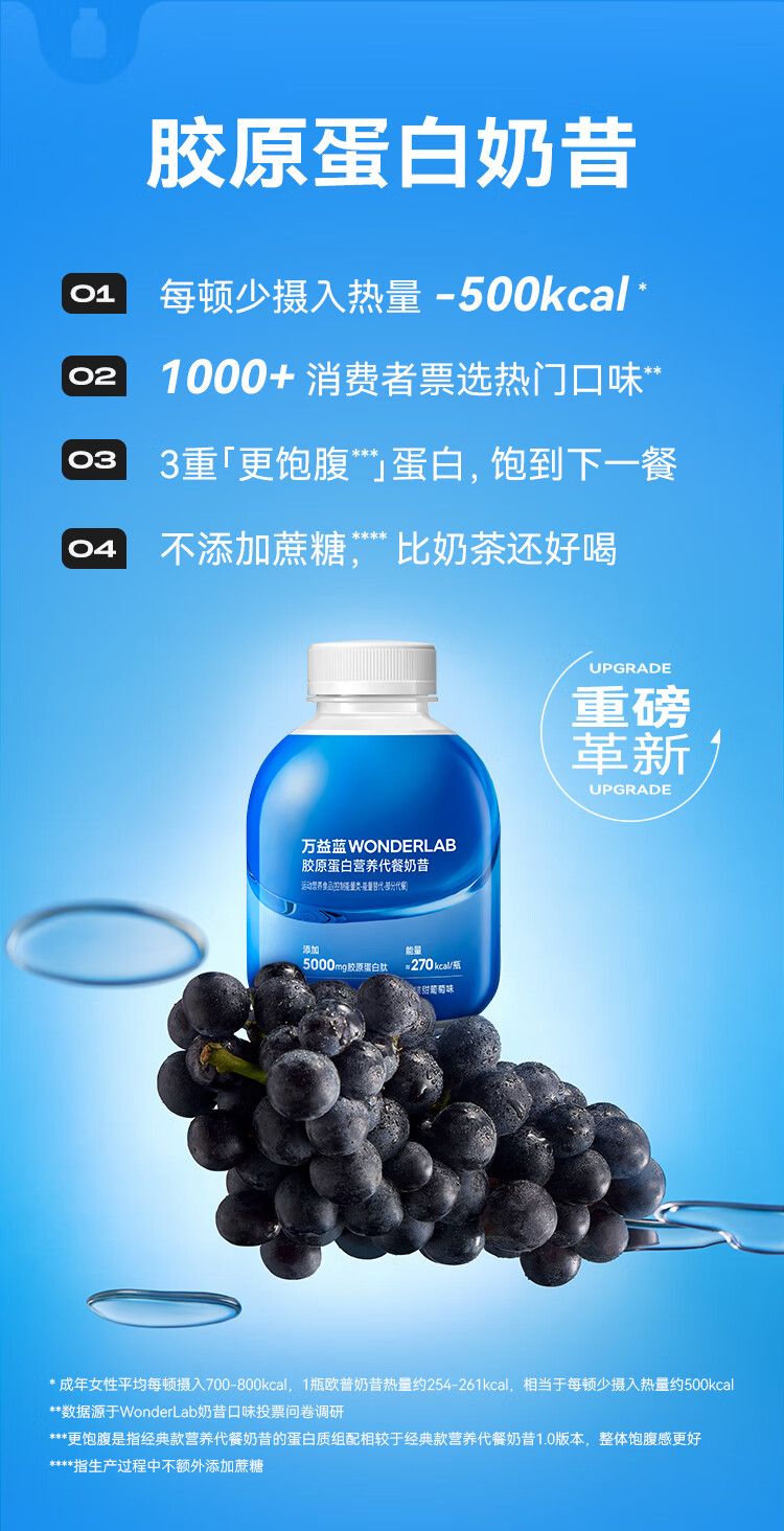 万益蓝WonderLab 胶原蛋白代餐奶昔 一周餐3重蛋白营养饱腹代餐粉粥冲饮奶茶口感早餐代餐粉 [胶原蛋白] 奶昔