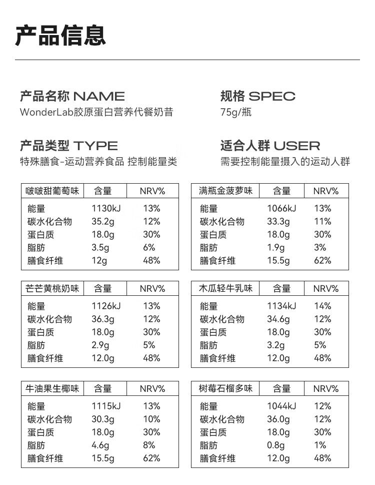 商品名称:万益蓝WonderLab 胶原蛋白代餐奶昔 一周餐3重蛋白营养饱腹代餐粉粥冲饮奶茶口感早餐代餐粉 [胶原蛋白] 奶昔