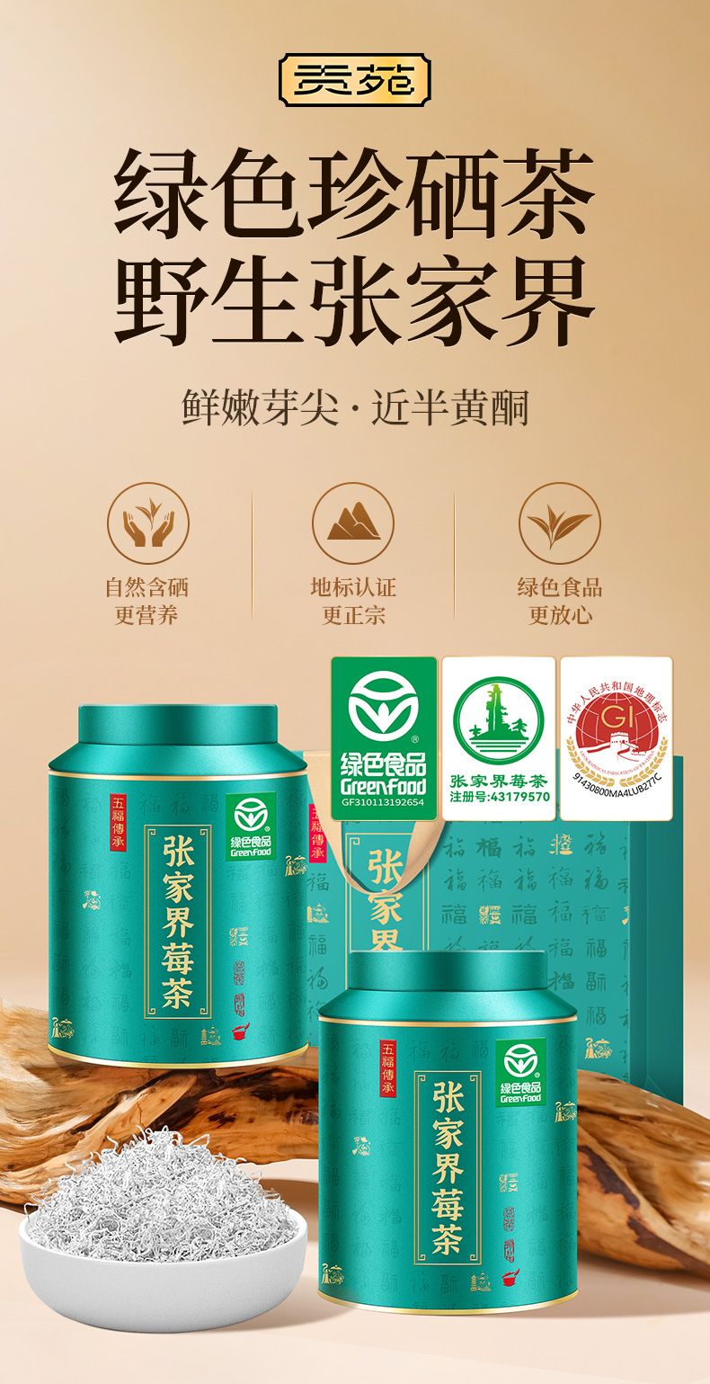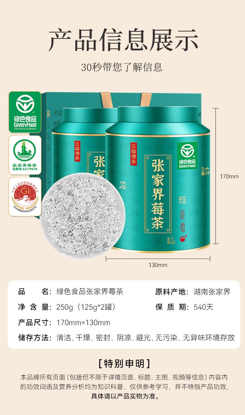 商品名称:贡苑张家界莓茶125g*2罐装 【绿色食品+地理标志产品】