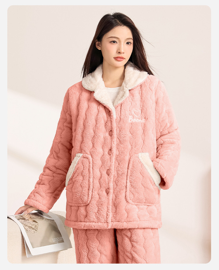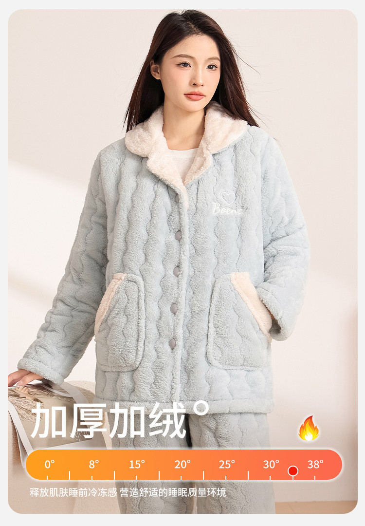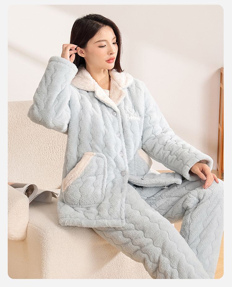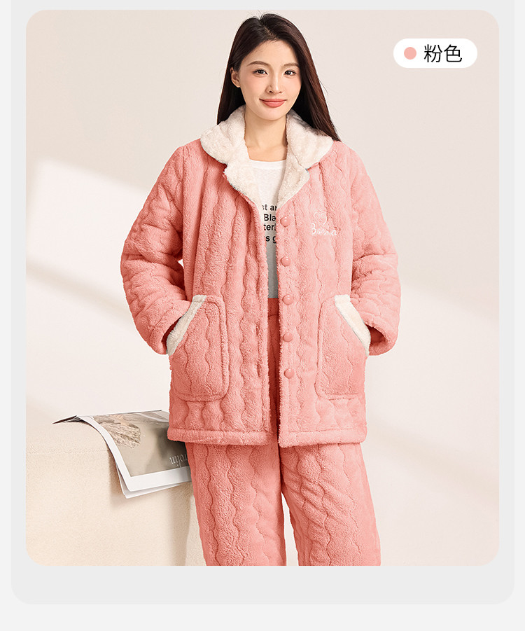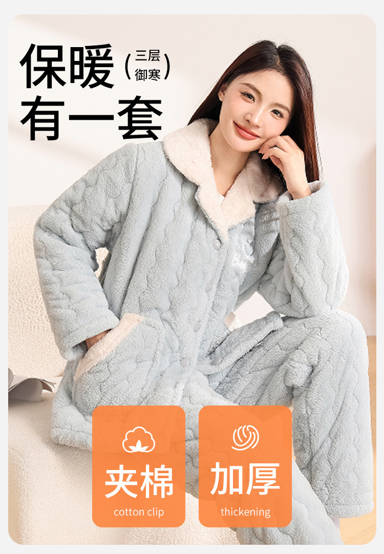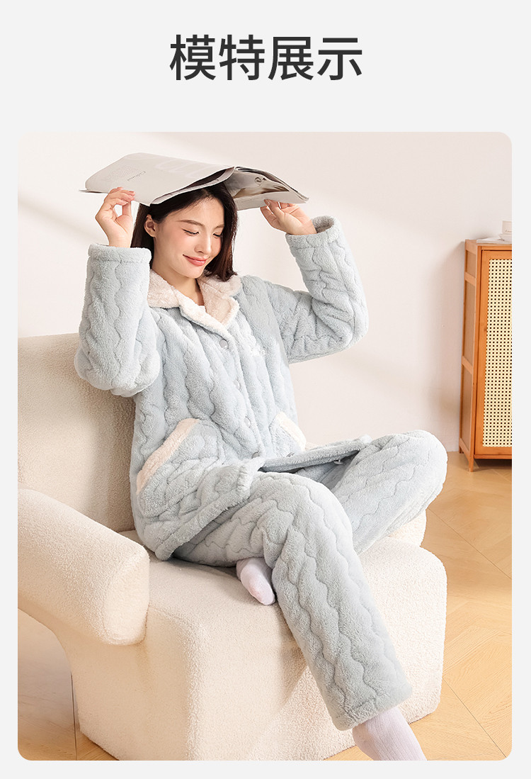 商品名称:【温暖舒适】女士睡衣秋冬款长袖保暖可外穿家居服套装 054795