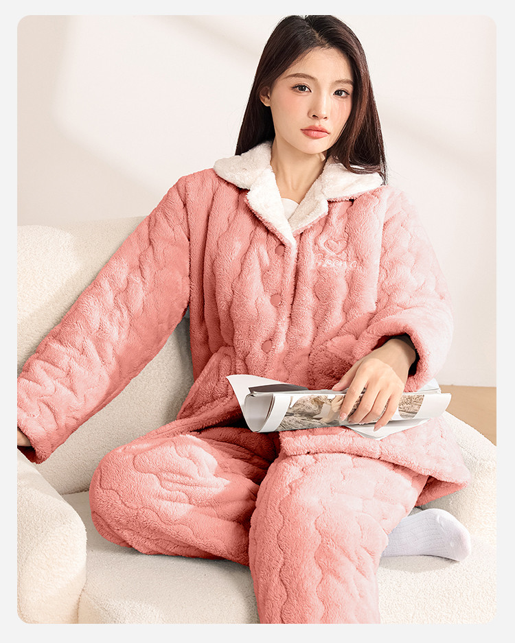 【温暖舒适】女士睡衣秋冬款长袖保暖可外穿家居服套装 054795