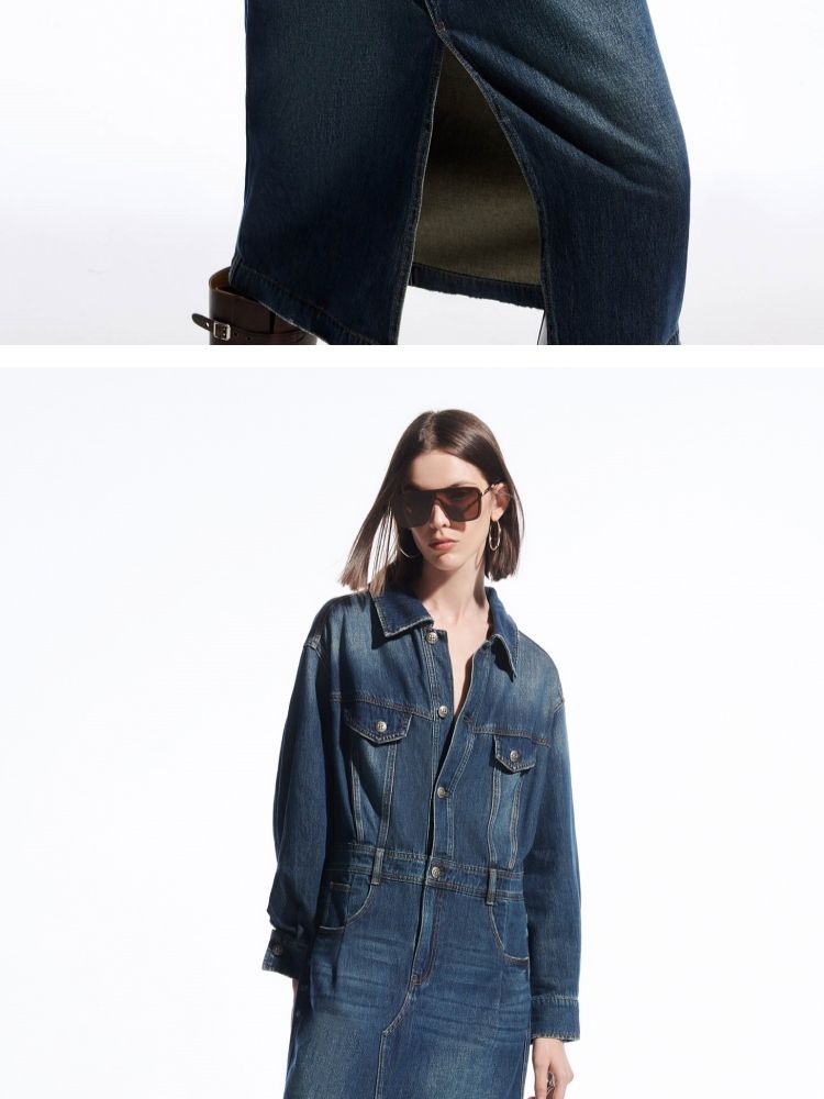 商品名称:【直筒牛仔裙】夏季时尚通勤做旧中长裙牛仔连衣裙女 528090