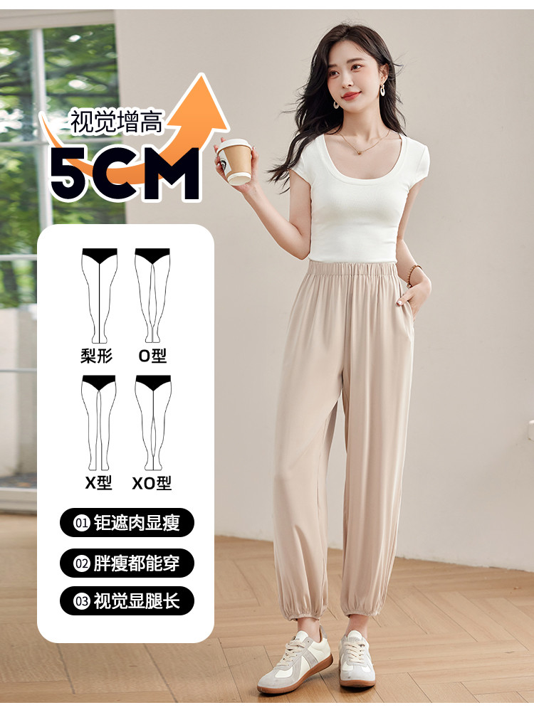 2025春装女装抗皱免熨烫束口裤女式时尚纯色休闲长裤 860184