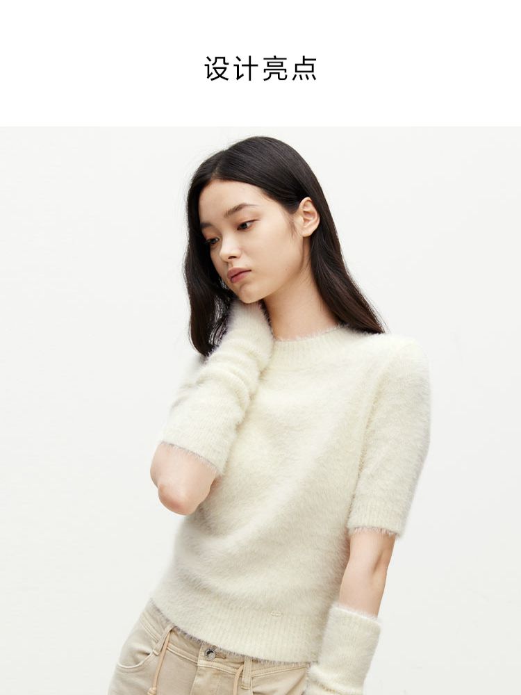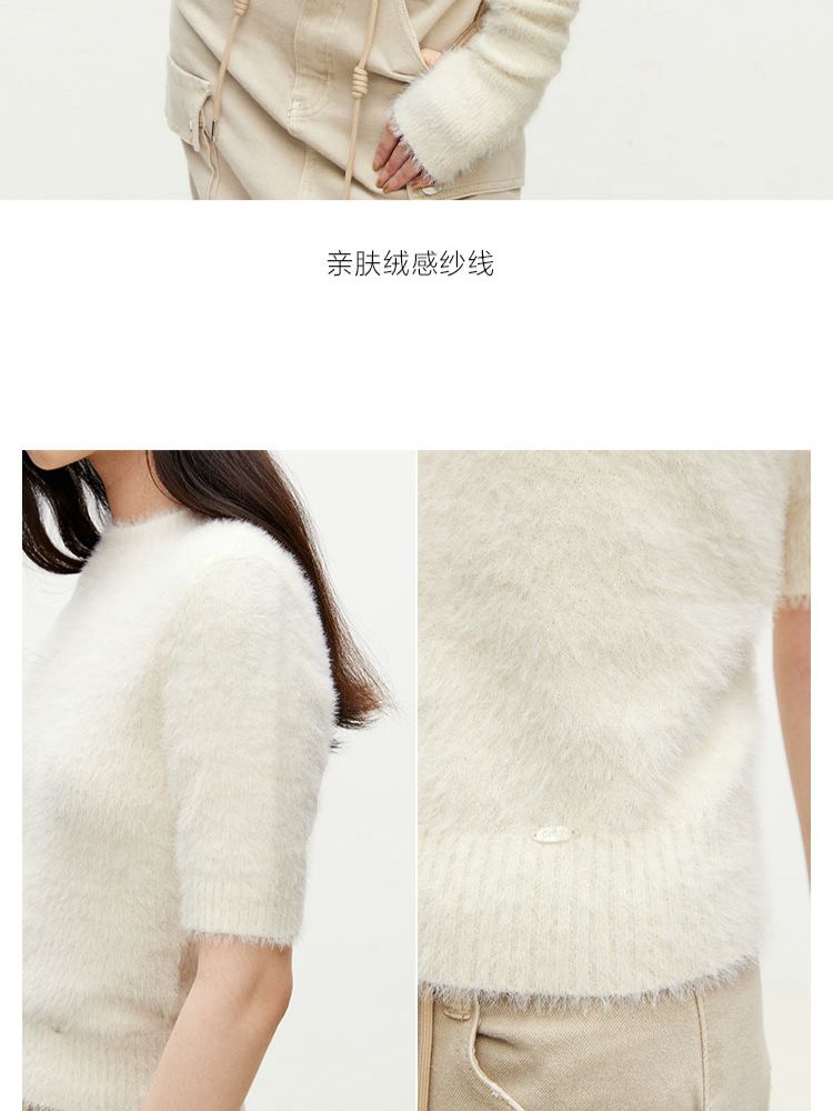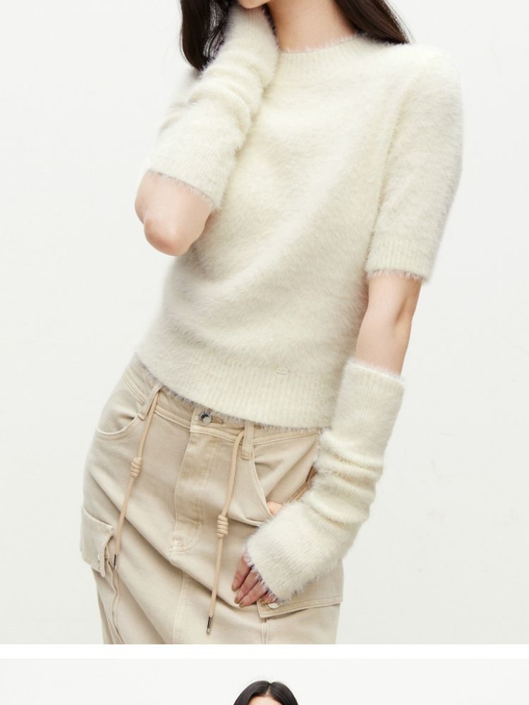 商品名称:【时尚气质】春季气质可拆卸袖套圆领短款针织衫女 177050