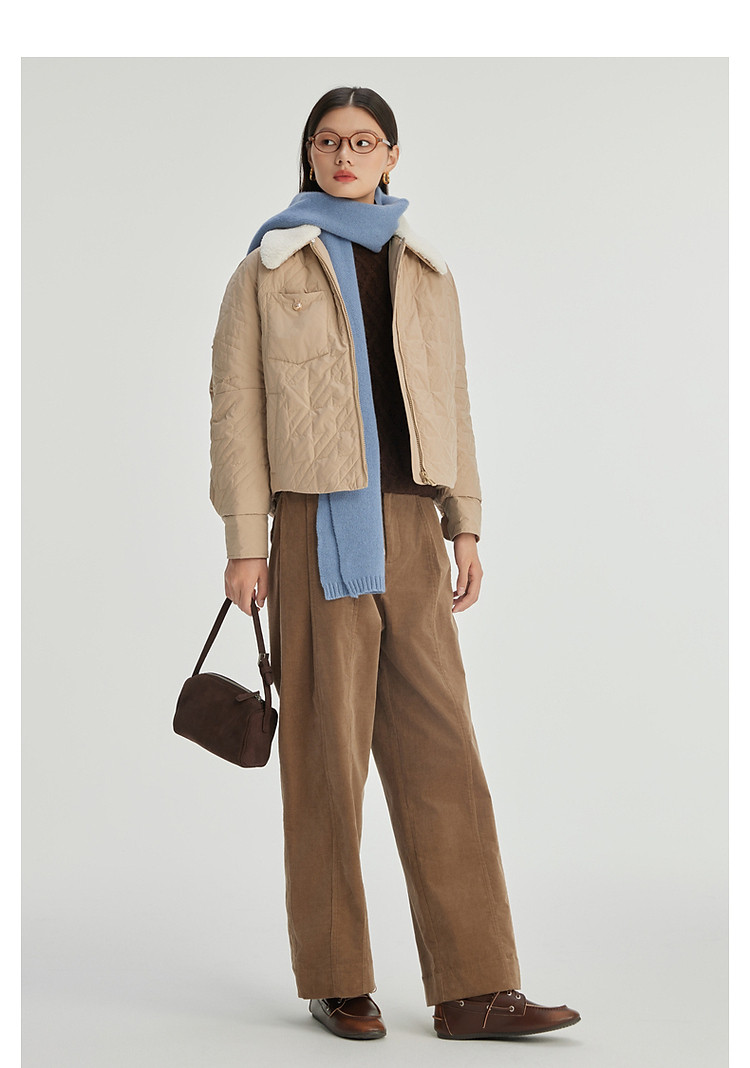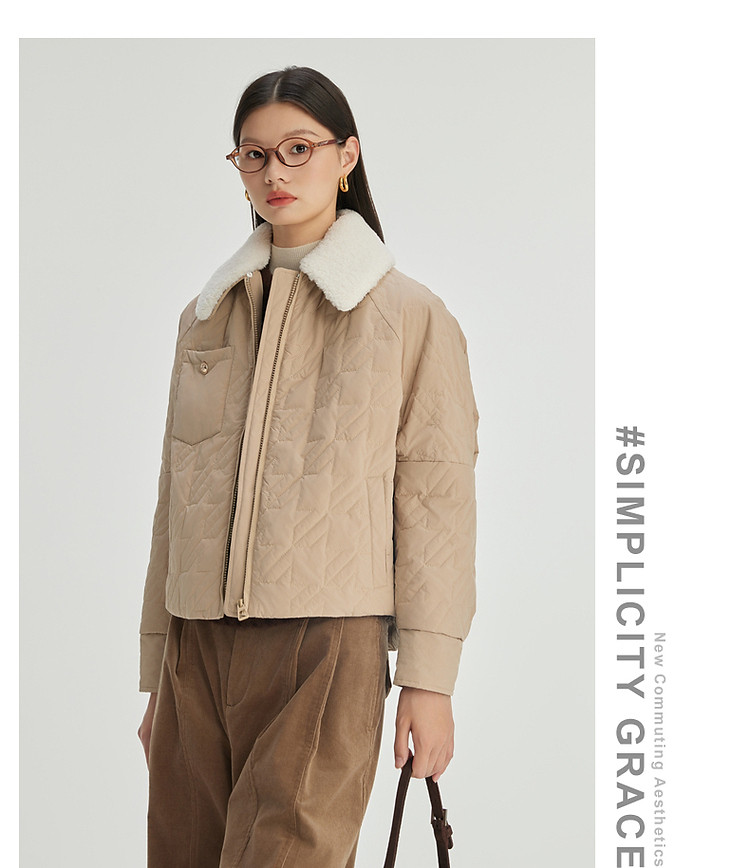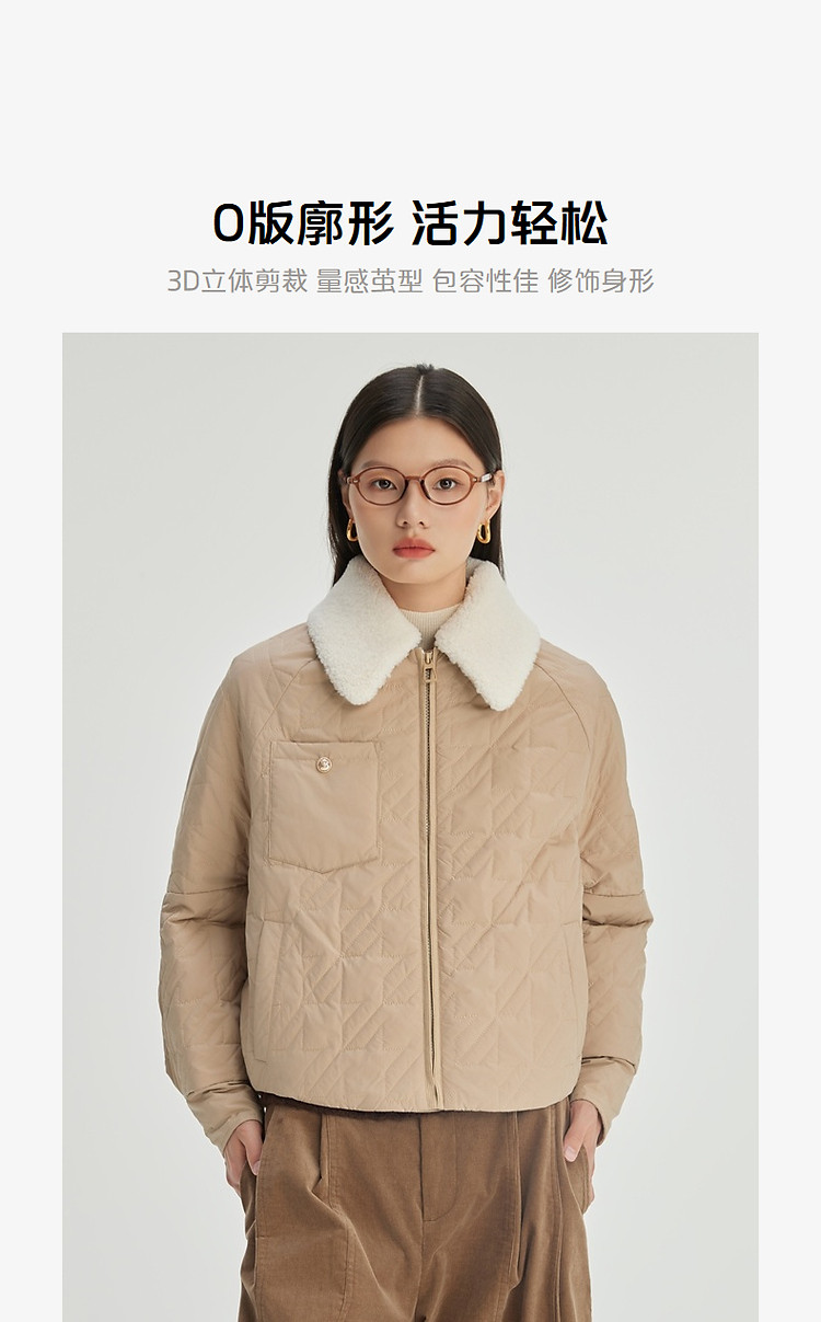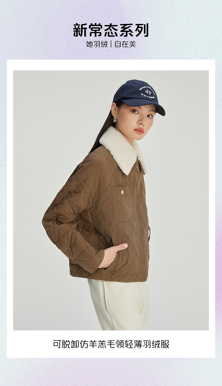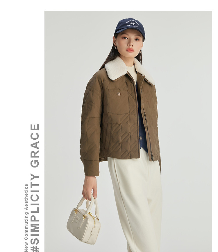 商品名称:【都市系列】轻薄羽绒服女24款短款仿羊羔毛领鸭绒羽绒服外套女 480726