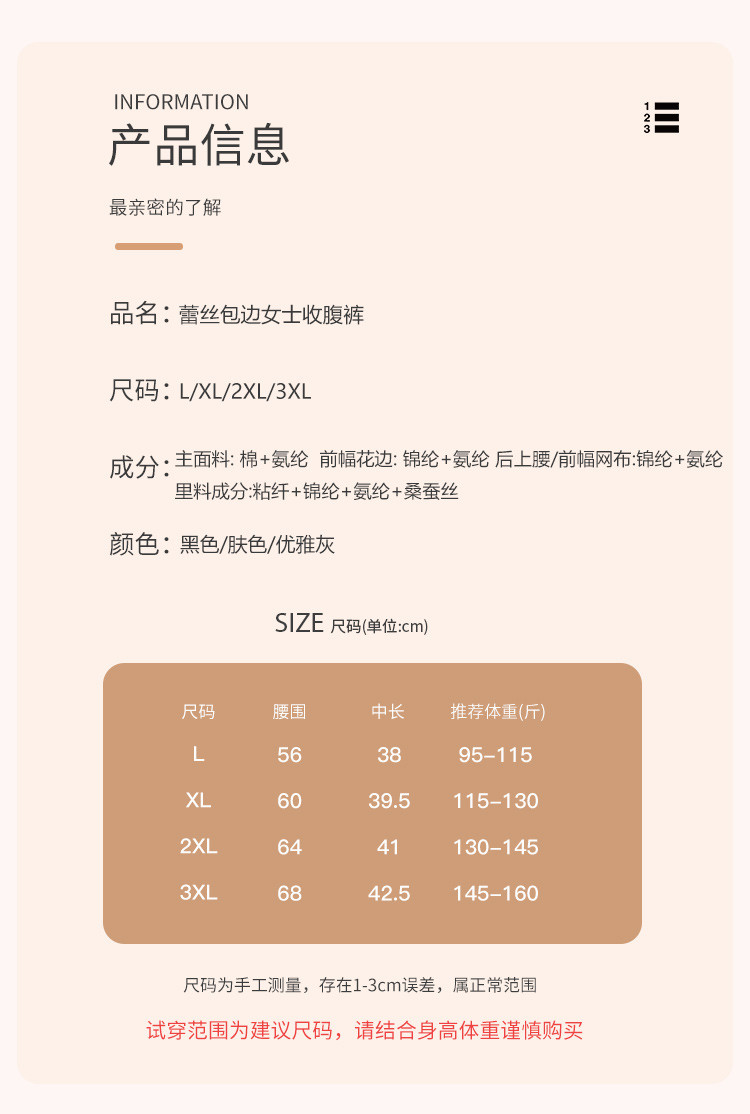 商品名称:【含桑蚕丝底裆】含棉性感蕾丝不夹臀塑身裤女士内裤收腹提臀裤女 413918