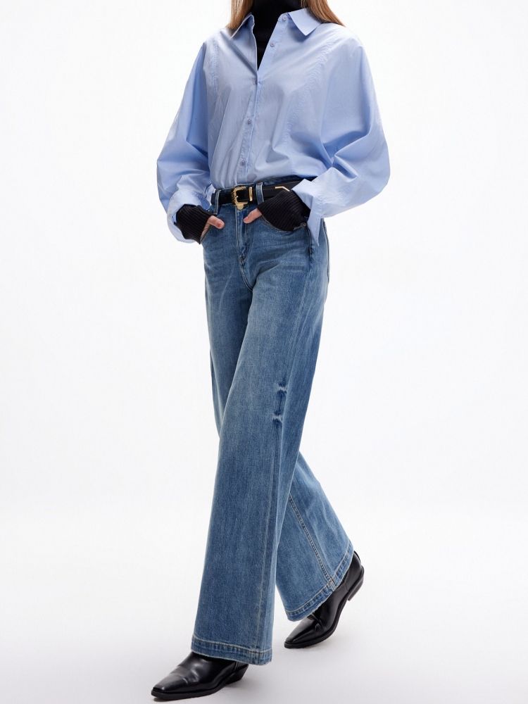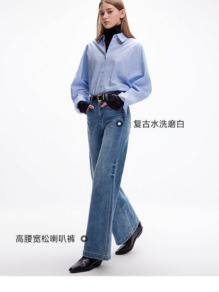 商品名称:【送腰带】25夏季莱卡小个子高腰宽松喇叭裤牛仔裤女 172634