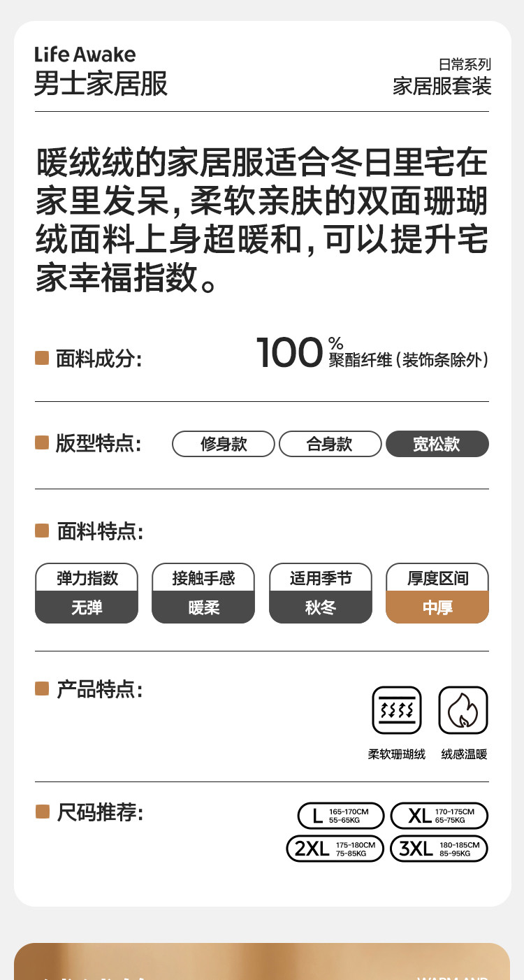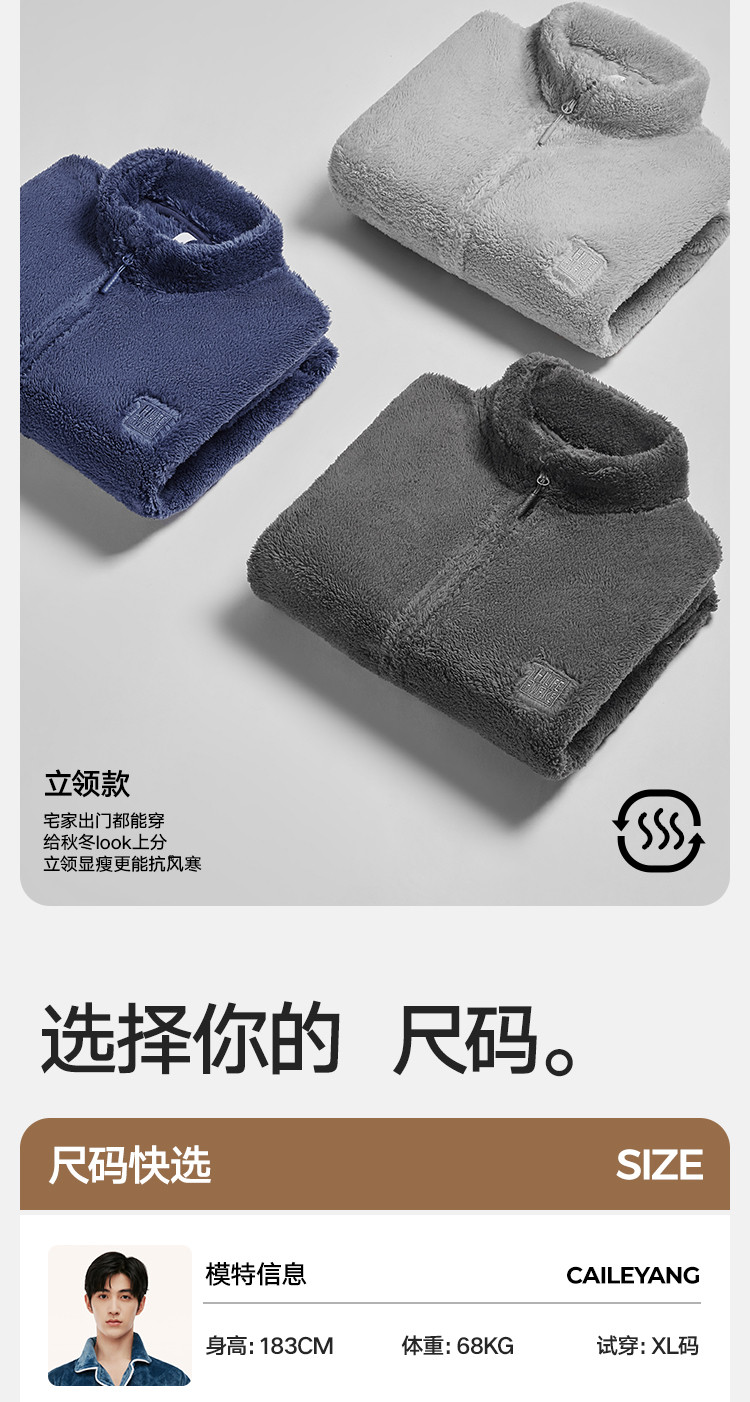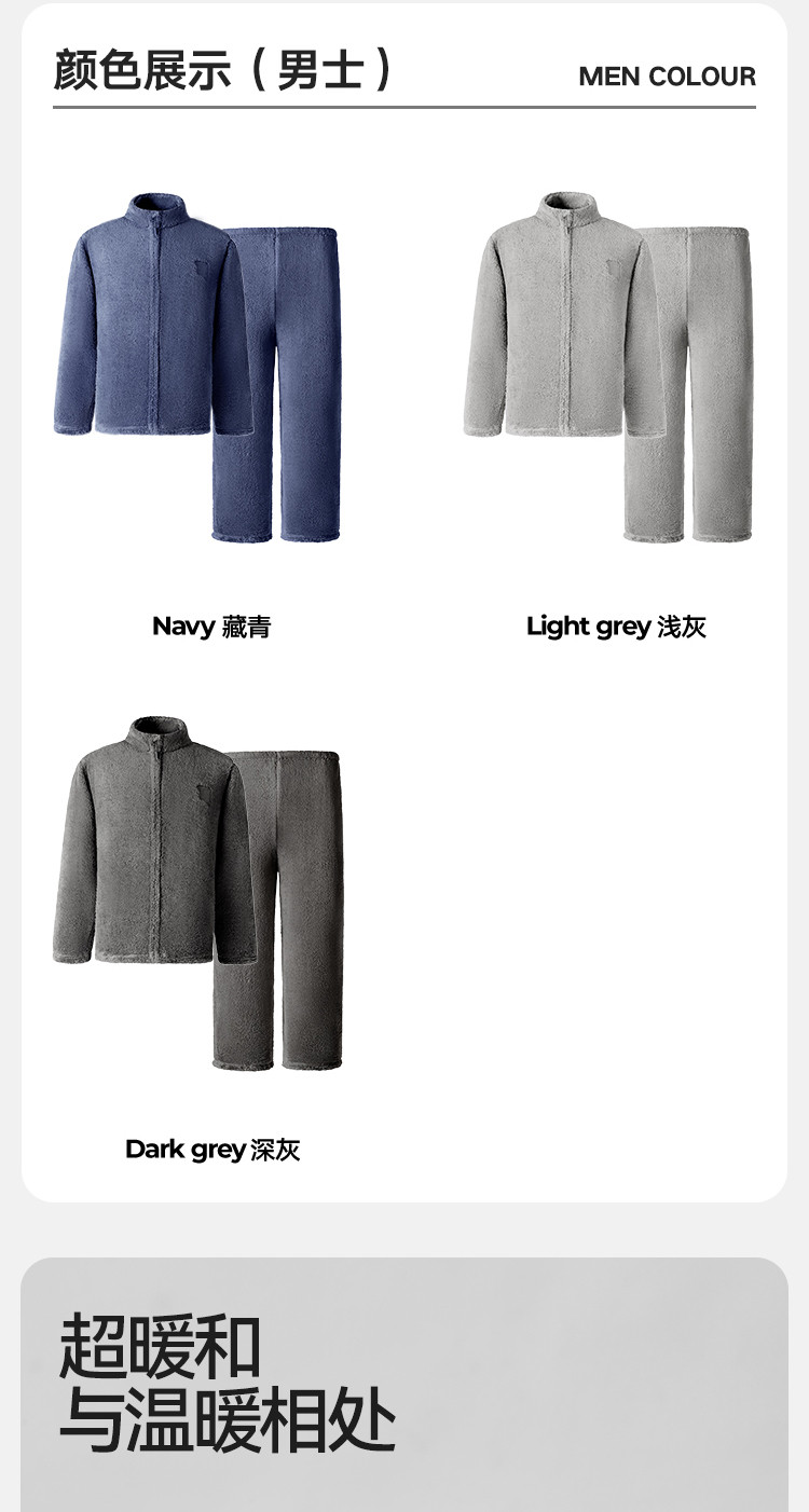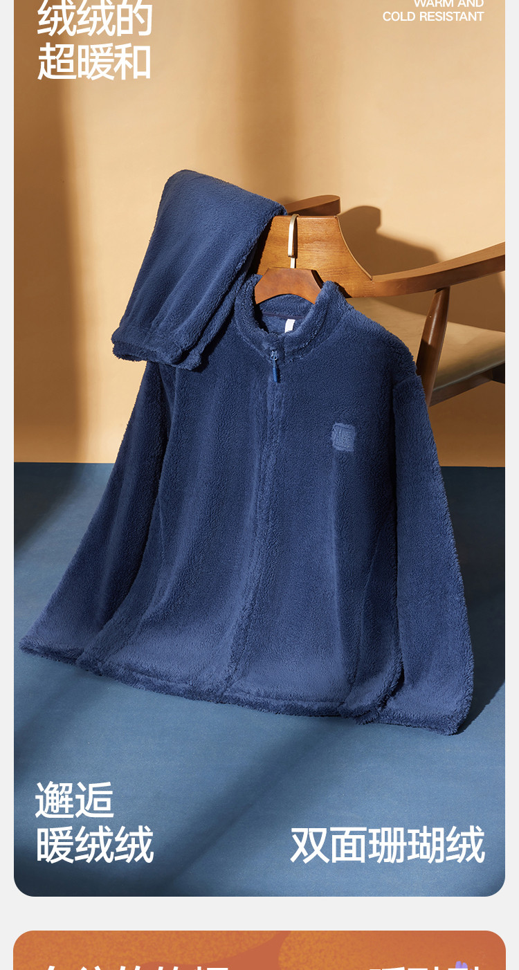 商品名称:【双面珊瑚绒】秋冬款男士立领家居服套装加绒加厚睡衣男保暖高级 423002