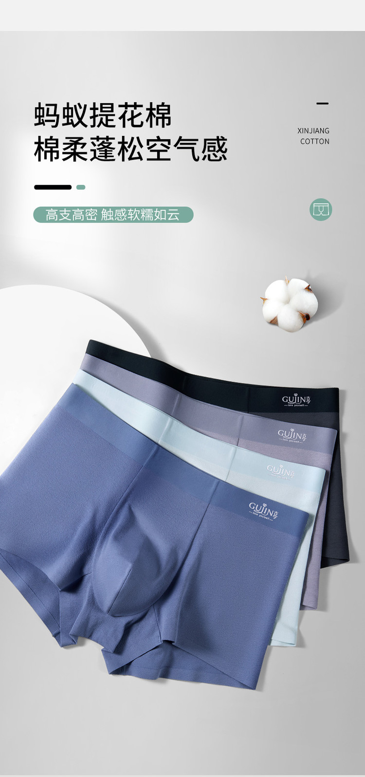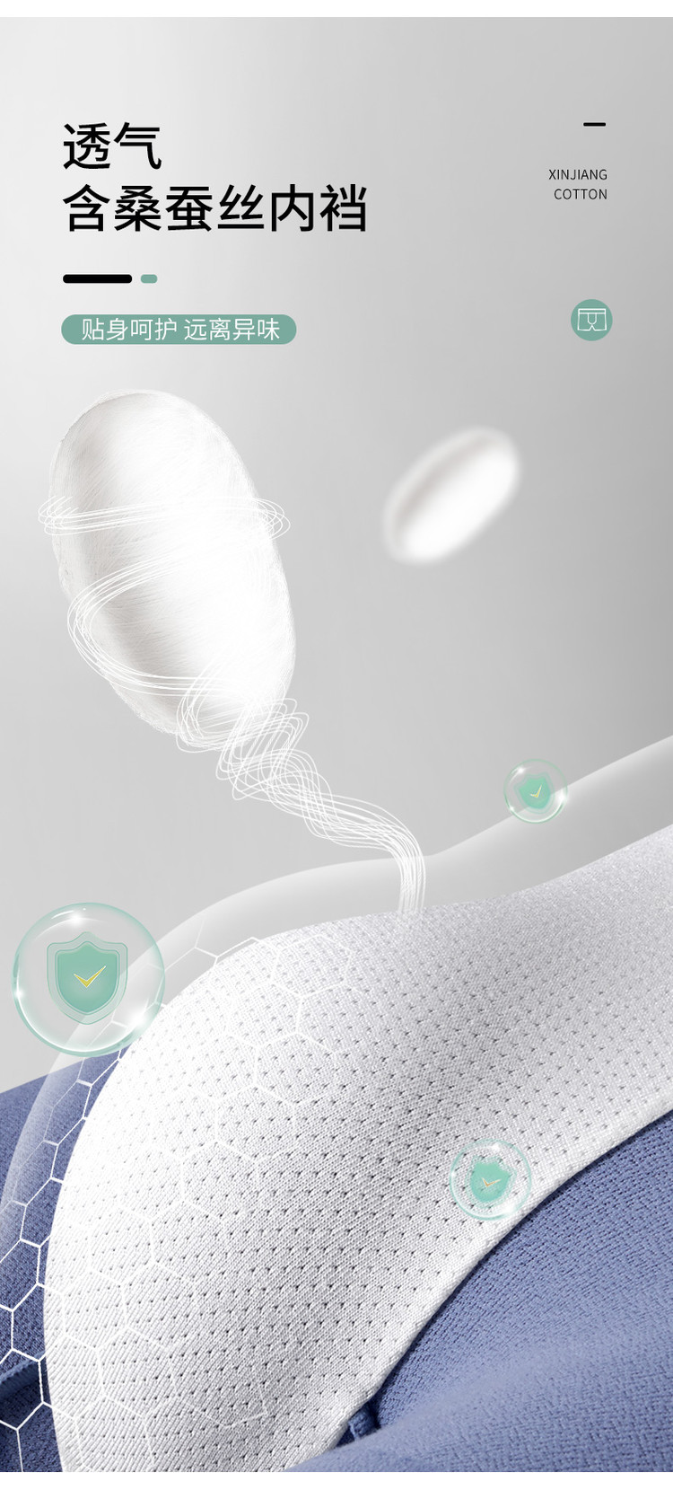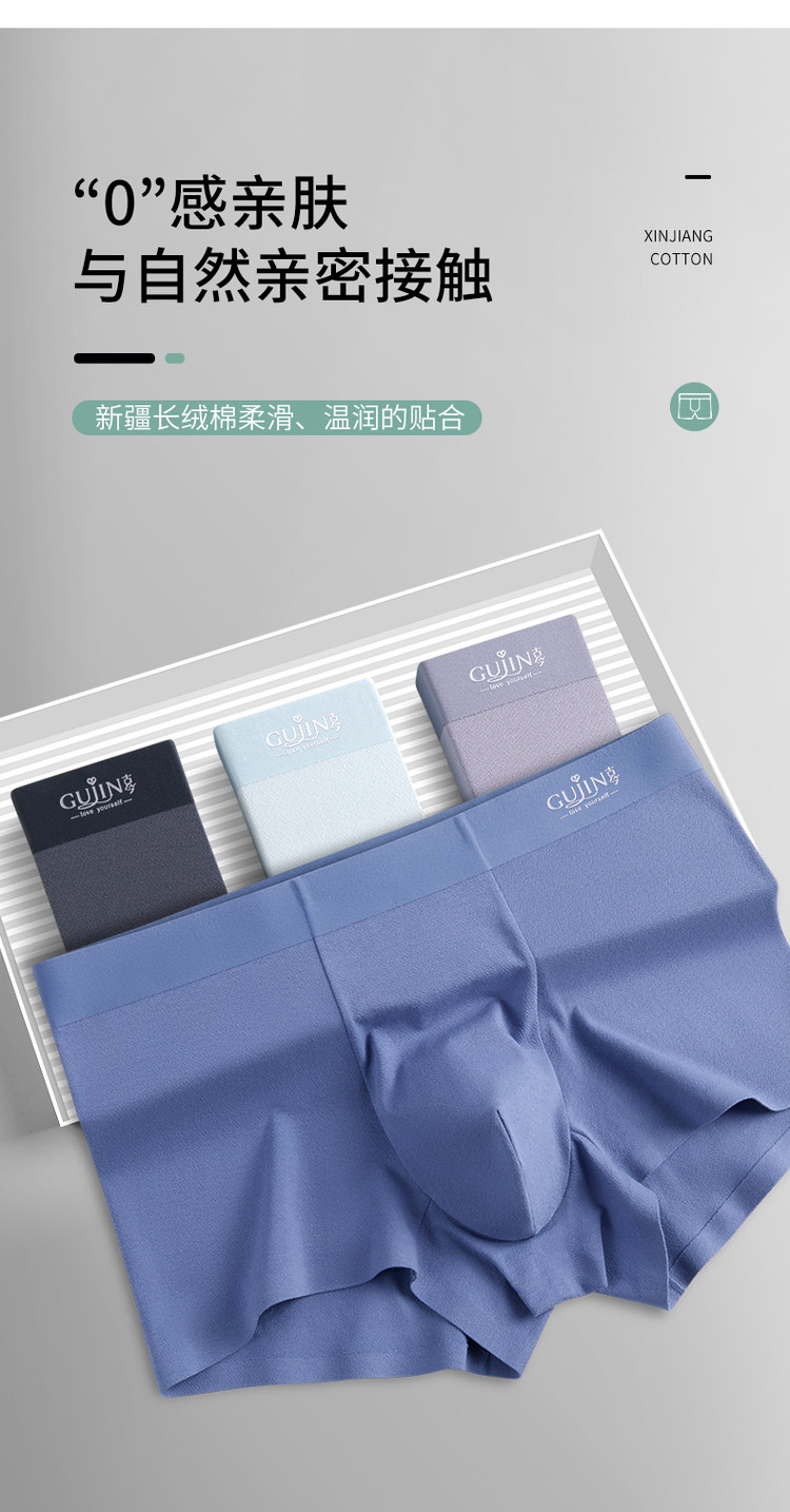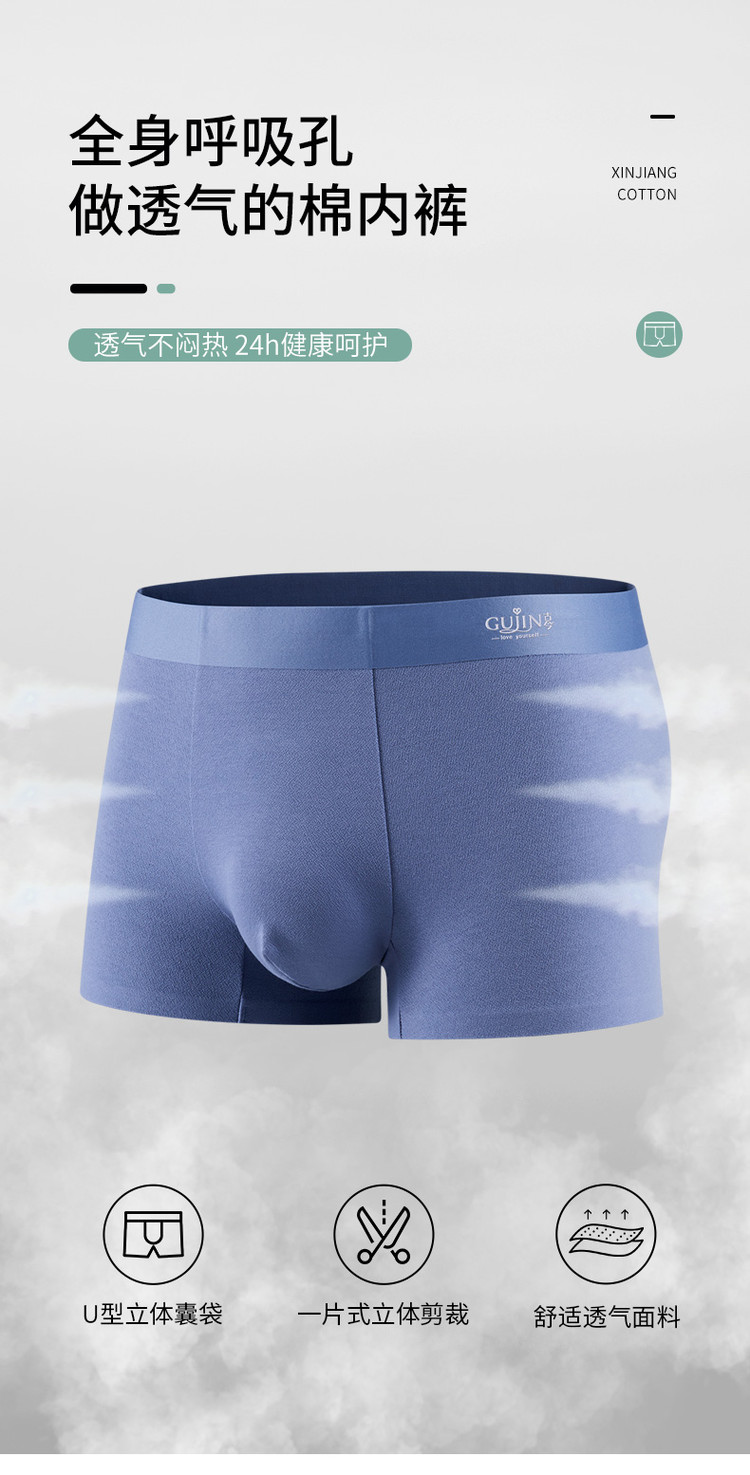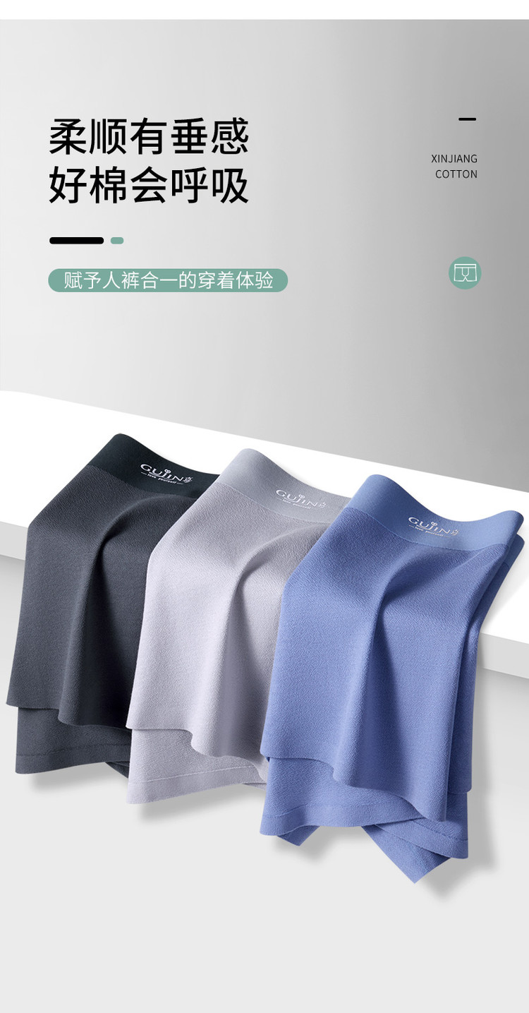 商品名称:【含桑蚕丝】3条装新疆棉男士内裤亲肤透气无痕平角裤衩男 780875
