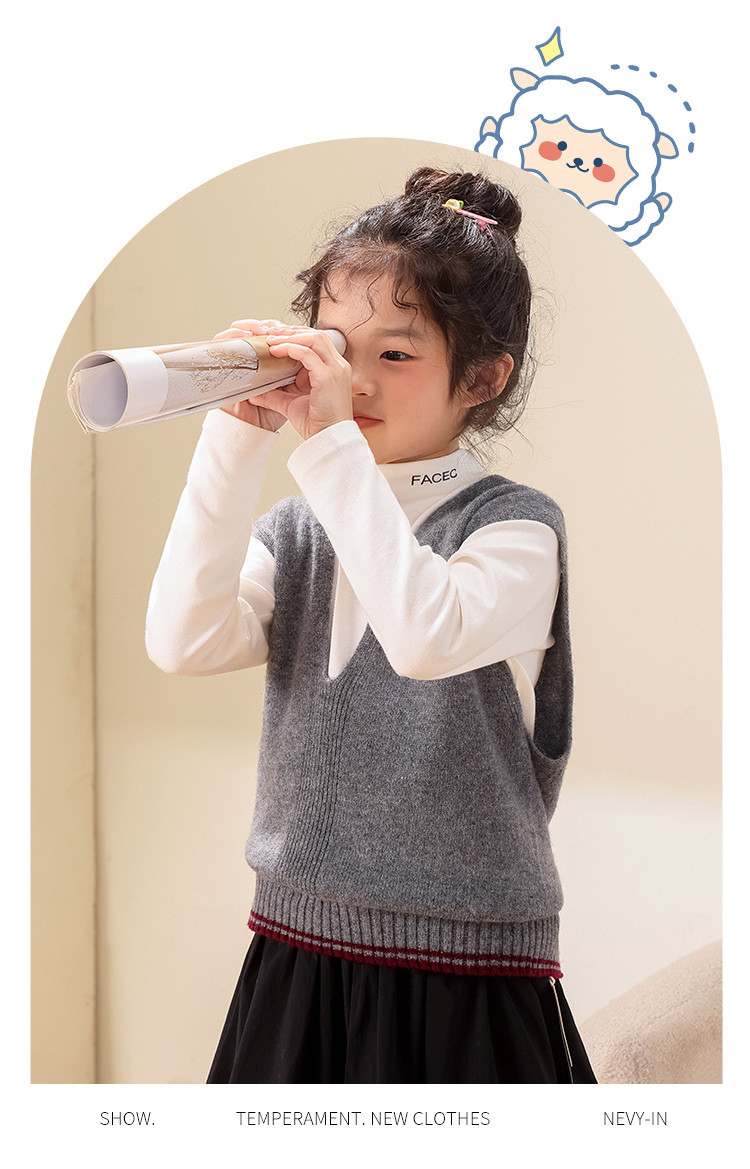 商品名称:【100羊毛】校服神器纯色V领儿童针织毛衣背心马甲坎肩 820563