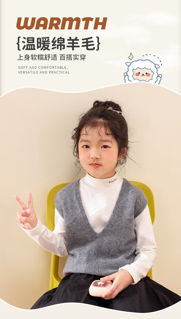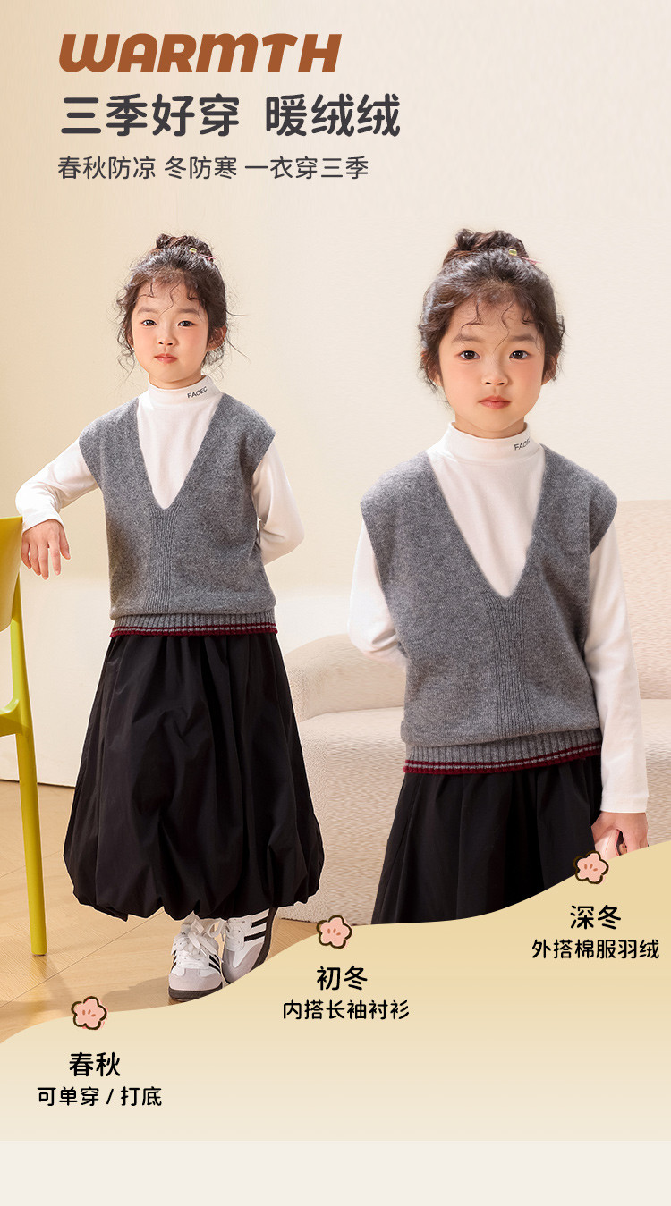 【100羊毛】校服神器纯色V领儿童针织毛衣背心马甲坎肩 820563