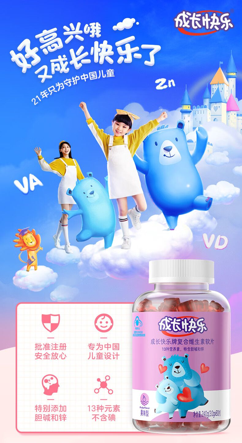 养生堂 成长快乐牌复合维生素软片 80粒 【药房同款】