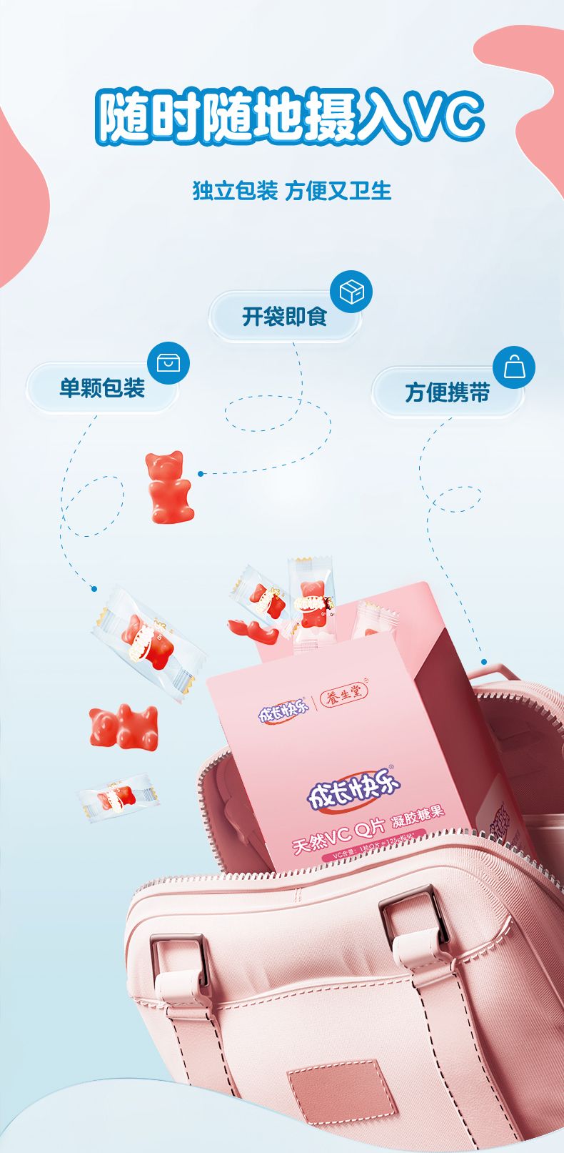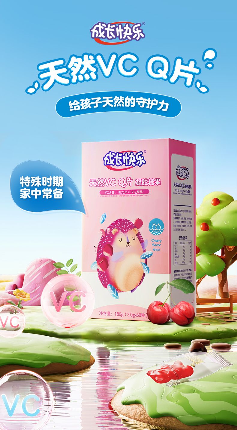 养生堂 成长快乐天然维生素C软糖Q片 60粒/盒
