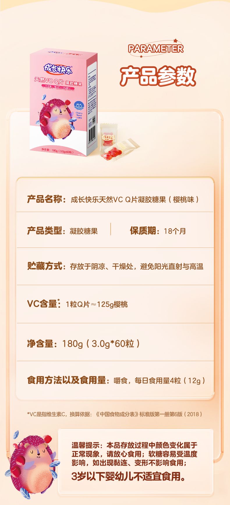 商品名称:养生堂 成长快乐天然维生素C软糖Q片 60粒/盒