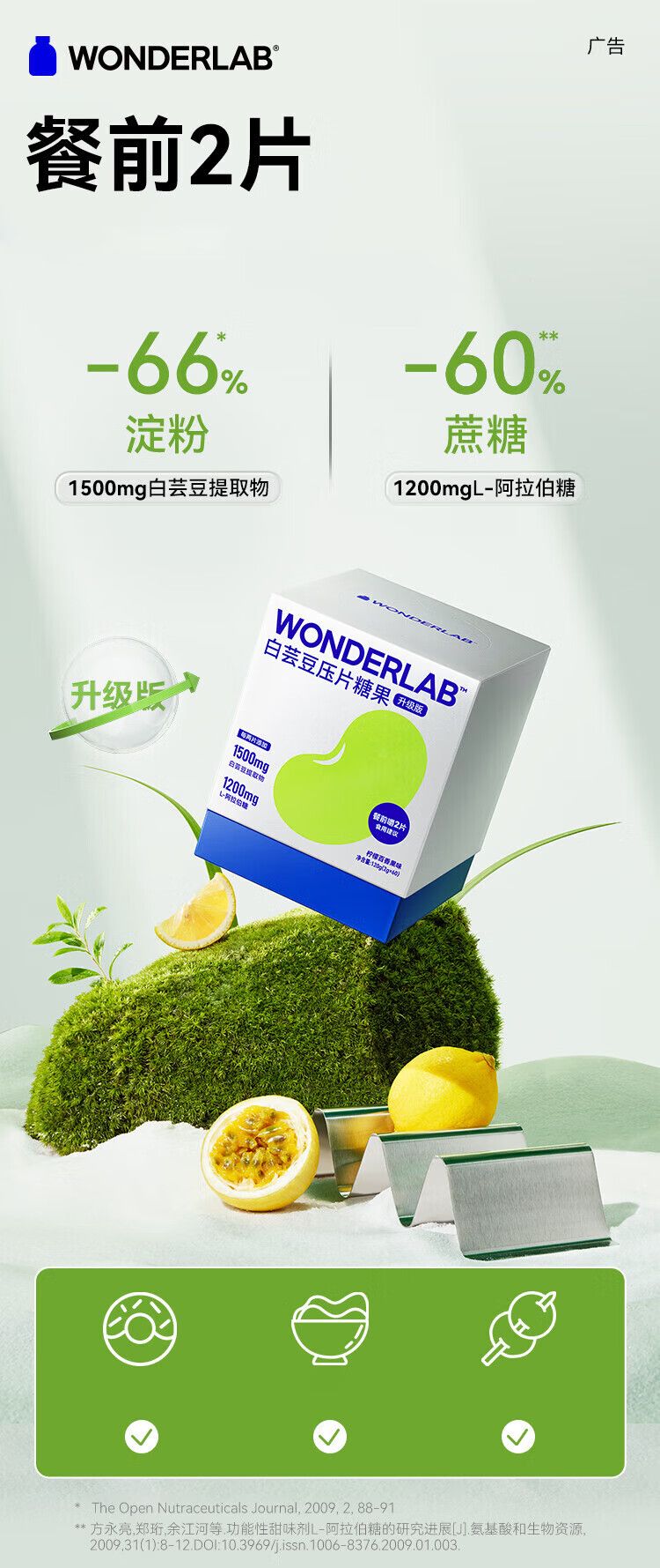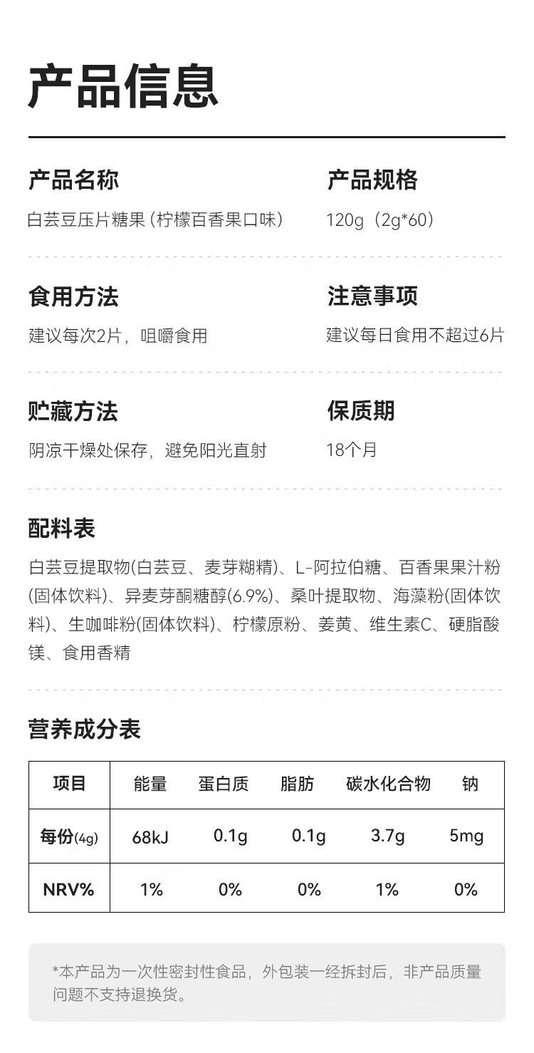 商品名称:万益蓝 白芸豆压片糖果柠檬百香果味 60粒装