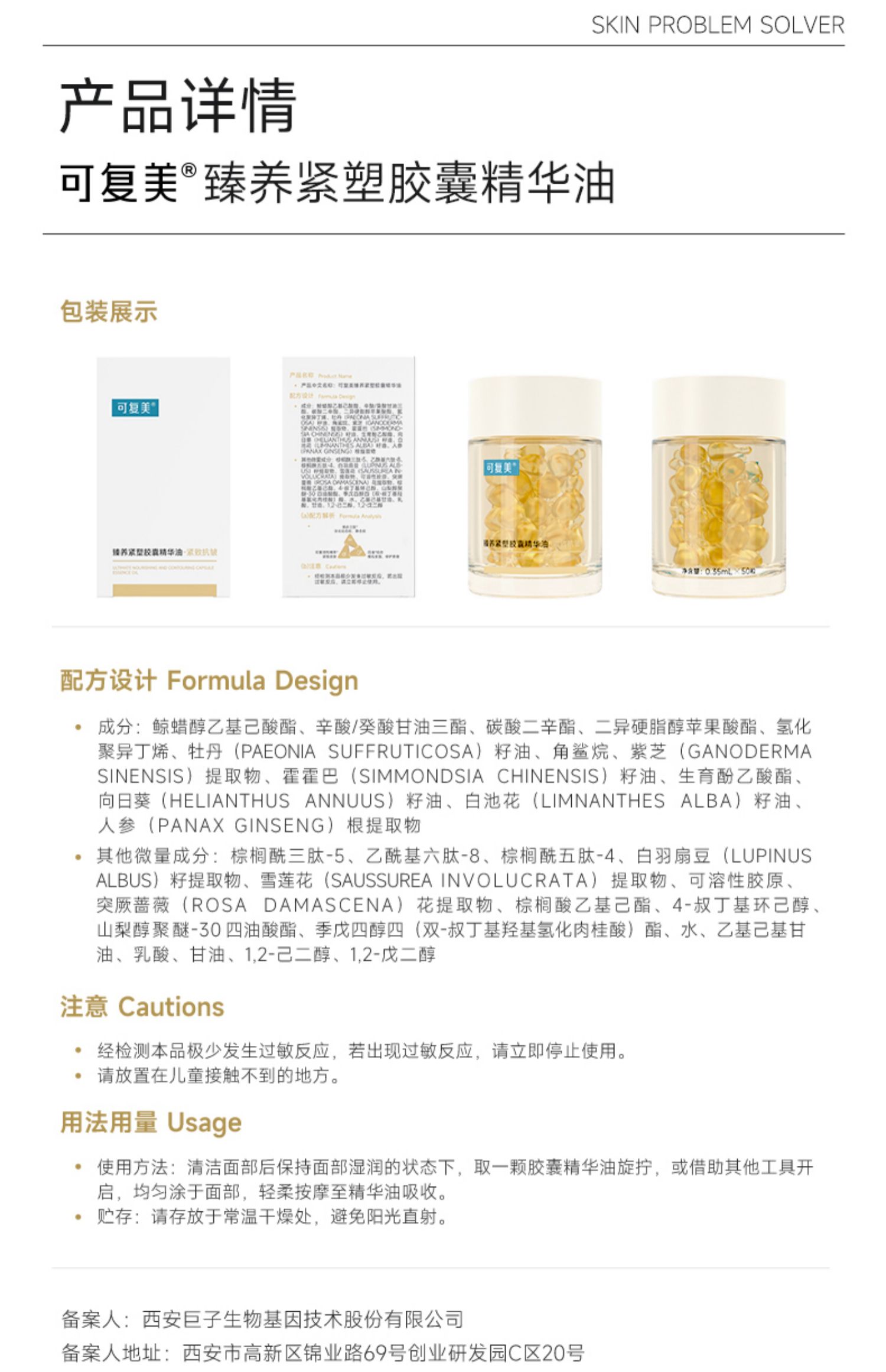 商品名称:可复美 轻养油胶囊舒缓修护432轻养油胶囊锁鲜纯滋养紧致精华油 7粒/50粒