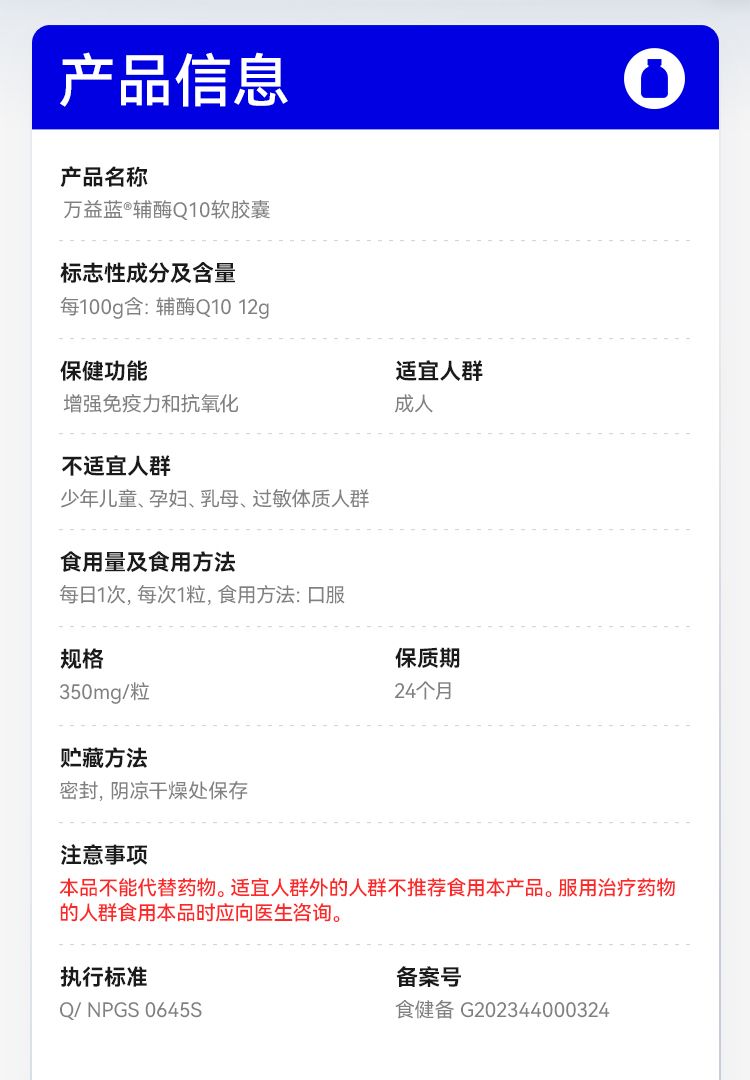 商品名称:万益蓝WonderLab 辅酶Q10软胶囊 60粒