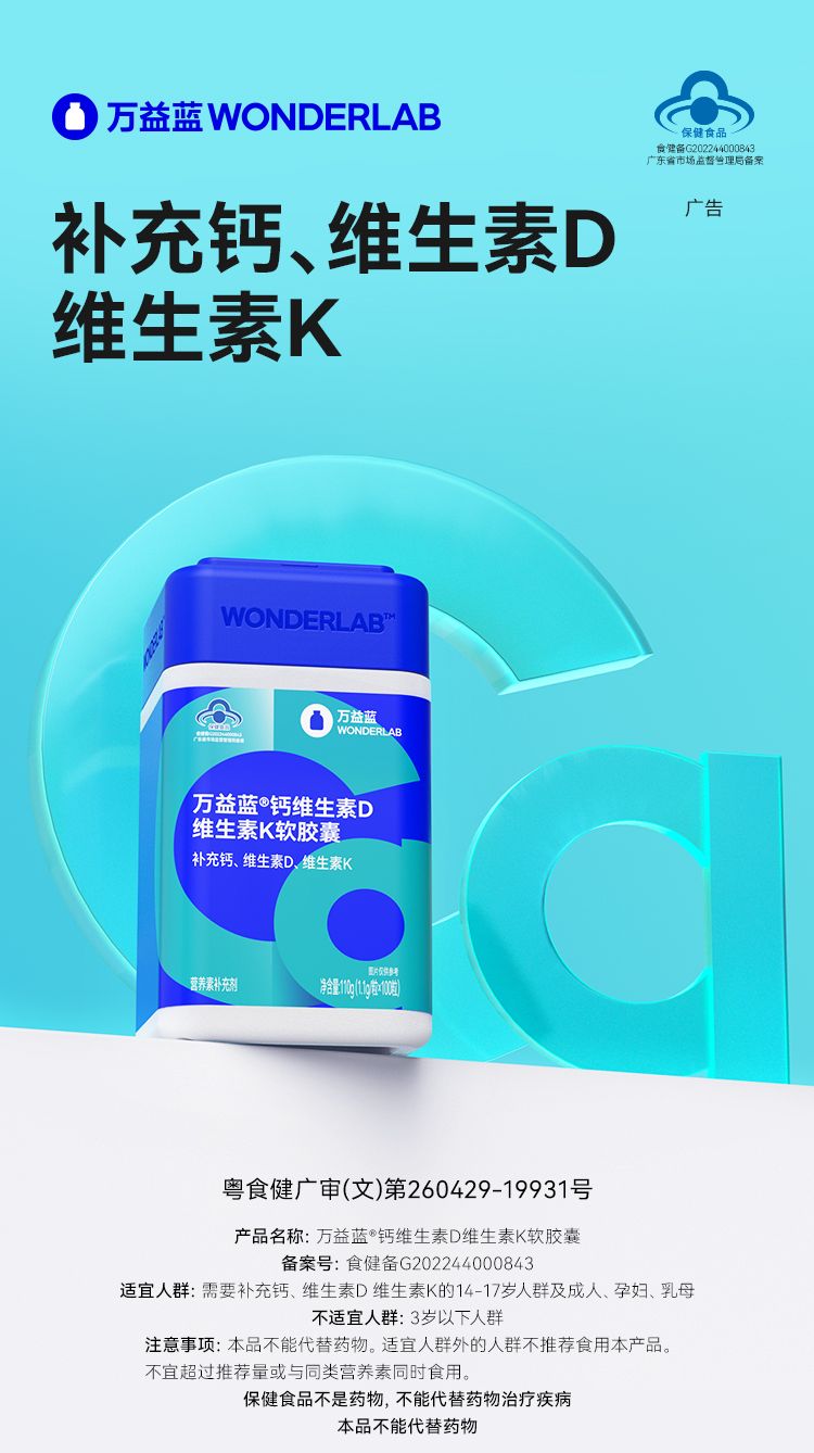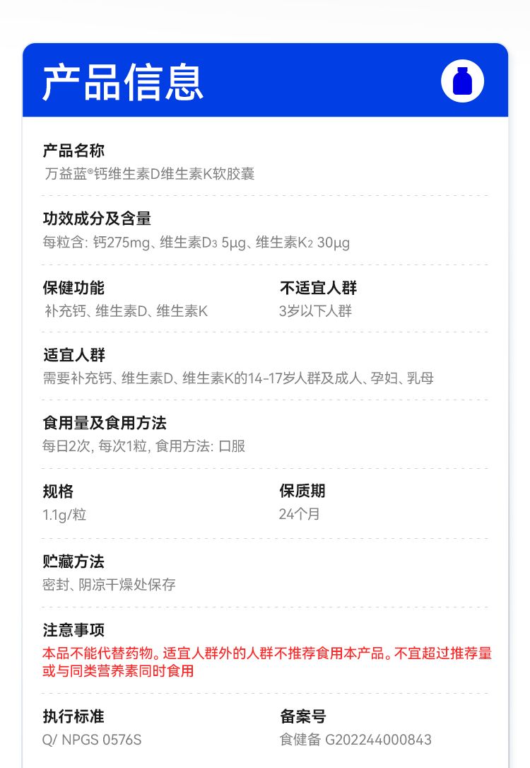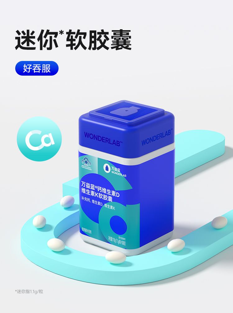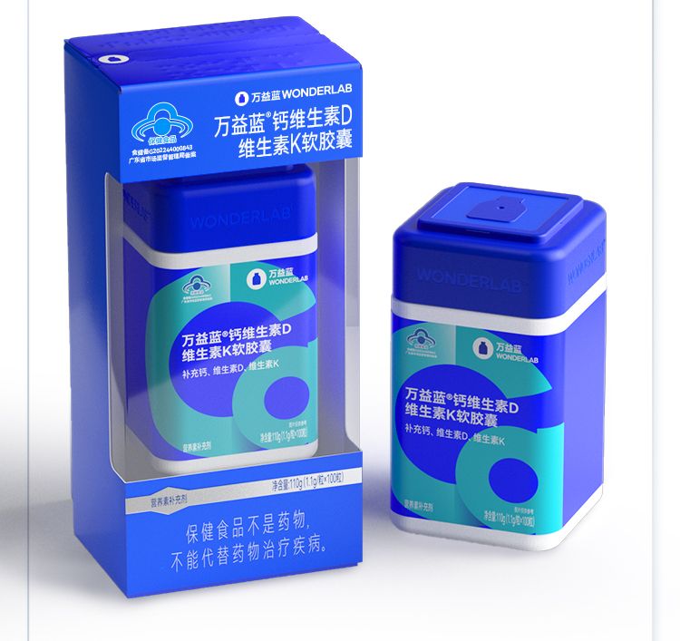 商品名称:万益蓝WonderLab 钙维生素D维生素K软胶囊 100粒/瓶