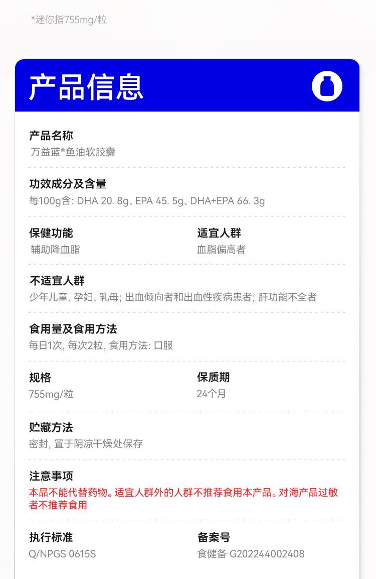 商品名称:万益蓝WonderLab 鱼油软胶囊 100粒