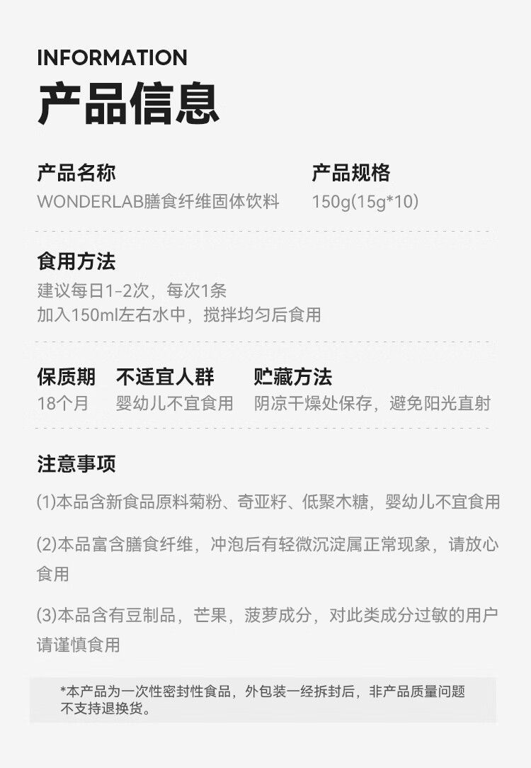 商品名称:万益蓝WonderLab 白芸豆膳食纤维固体饮料 15g*10条