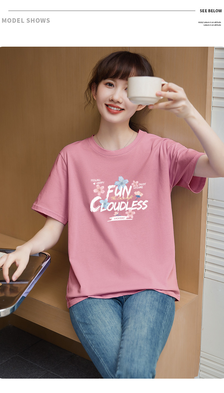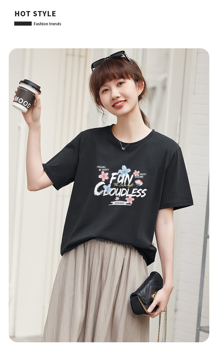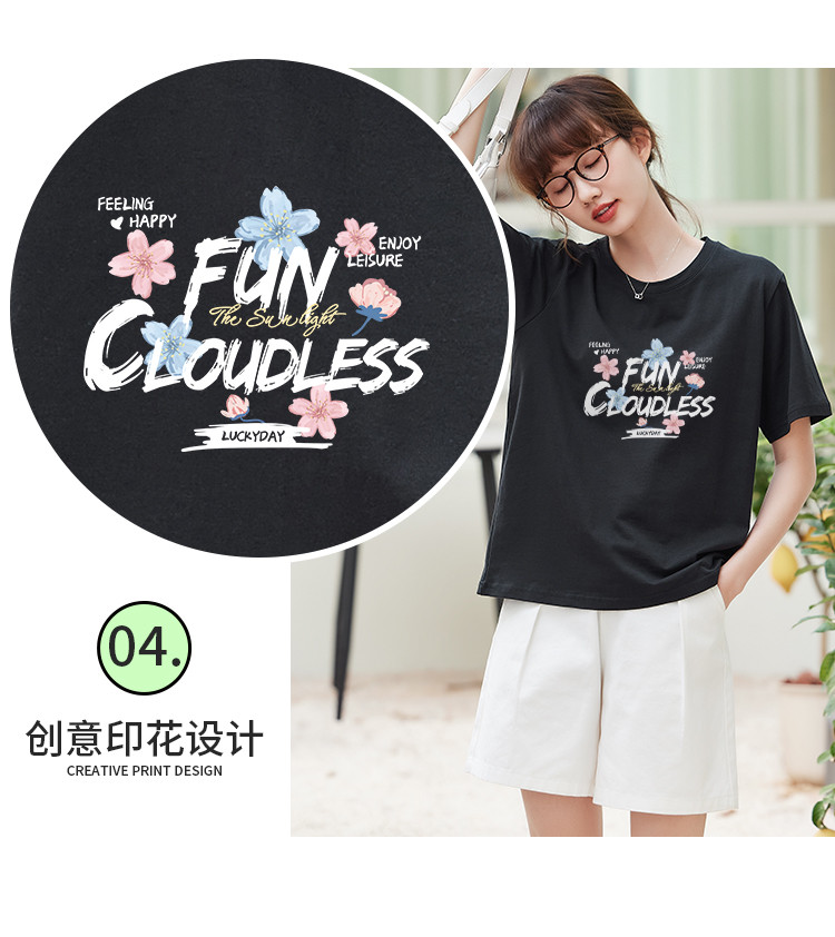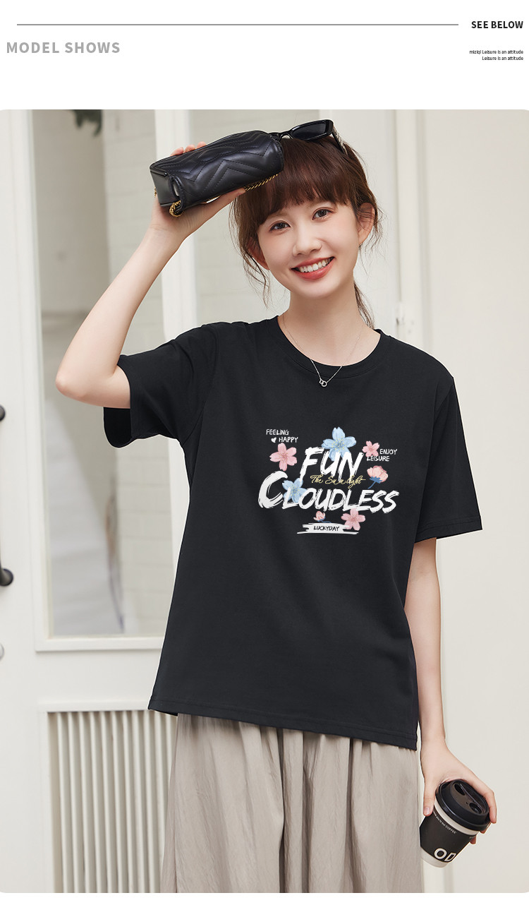 商品名称:米子旗夏装款圆领创意印花T恤女宽松短袖上衣 633882