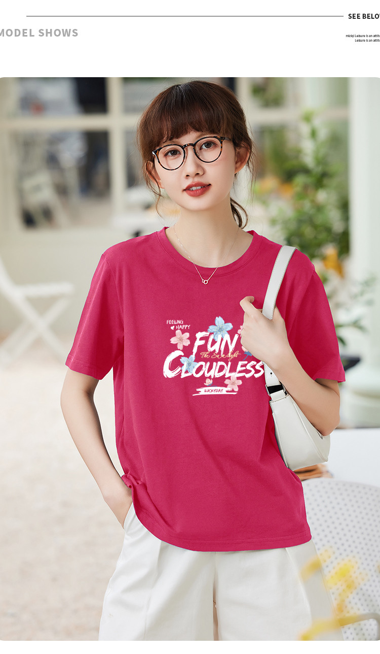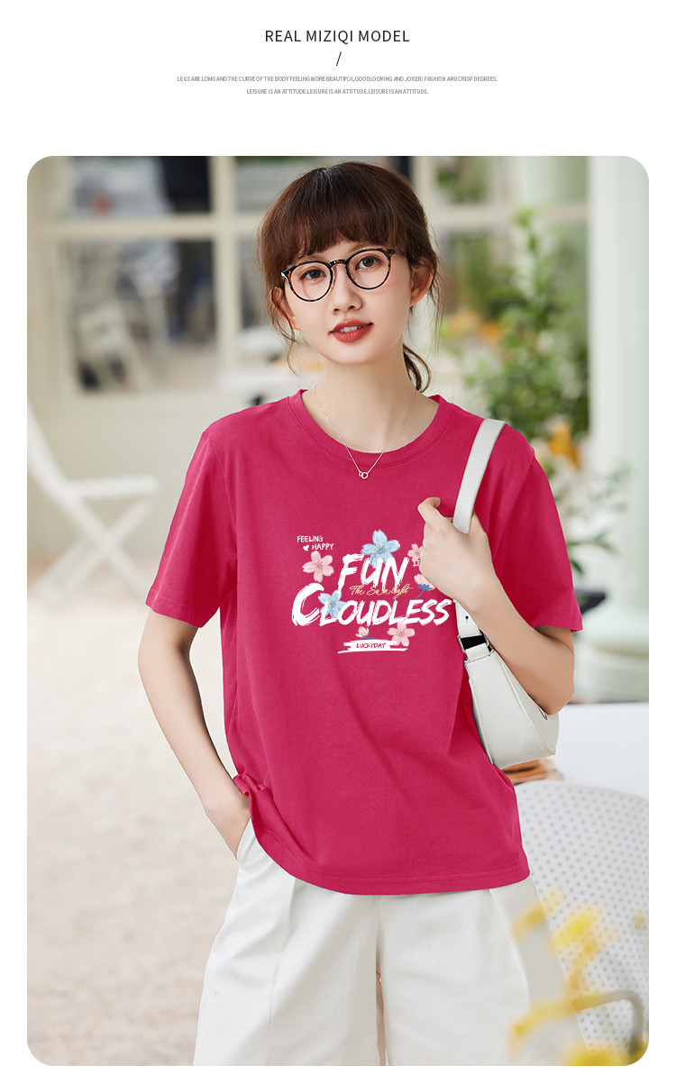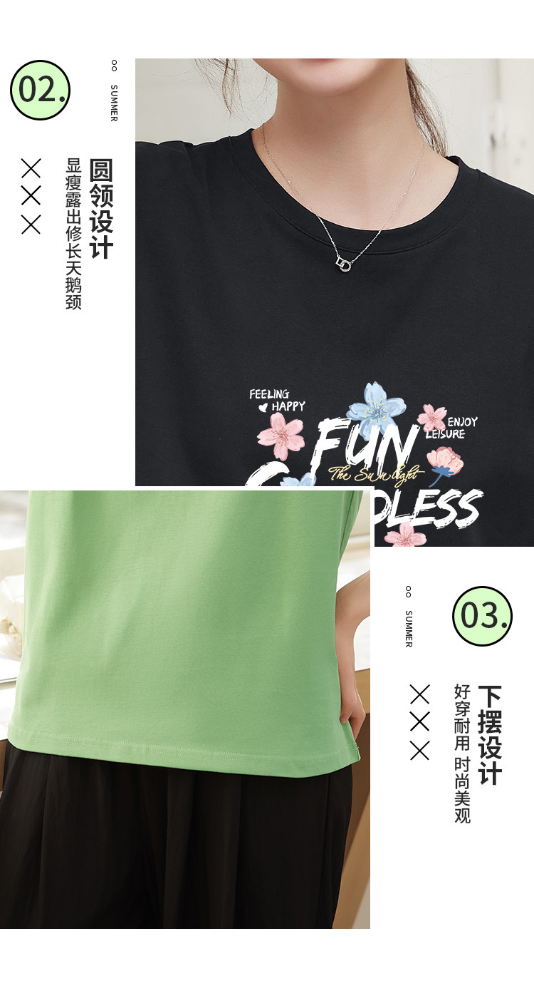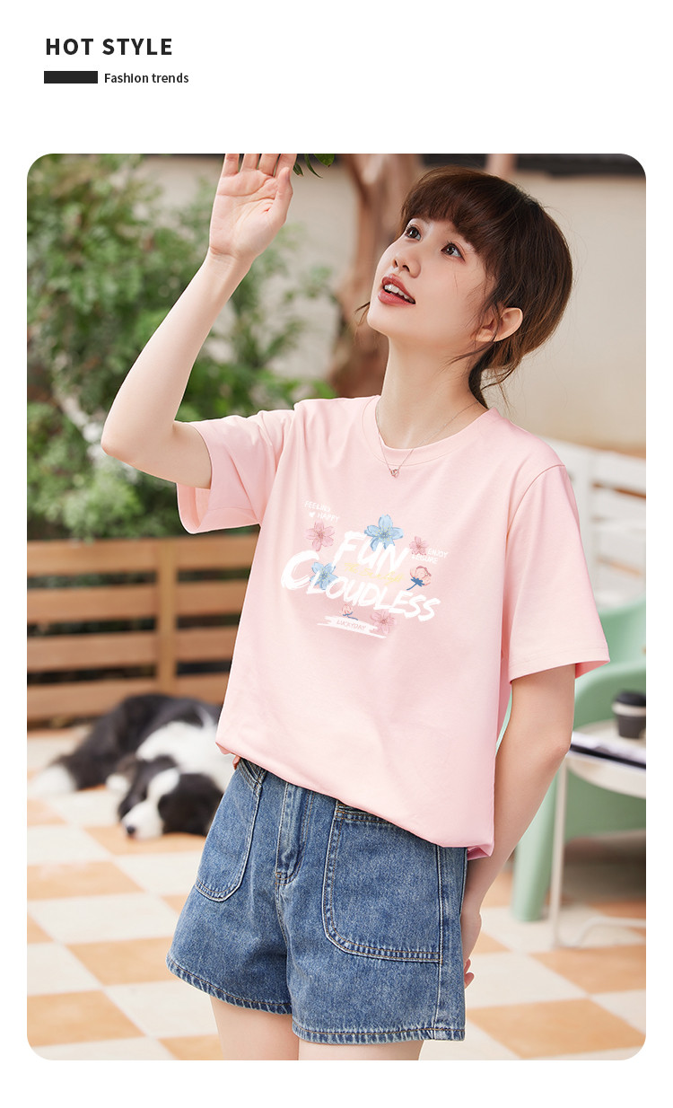 商品名称:米子旗夏装款圆领创意印花T恤女宽松短袖上衣 633882