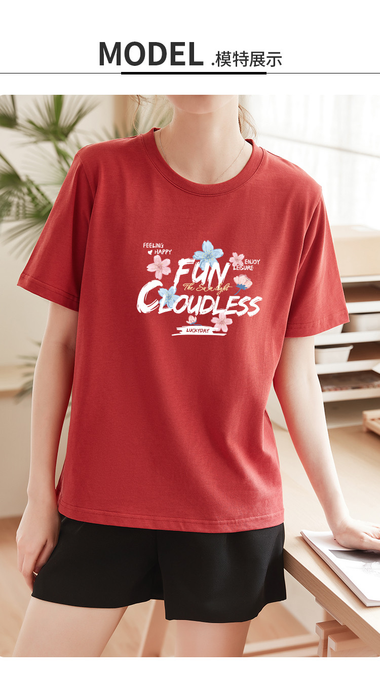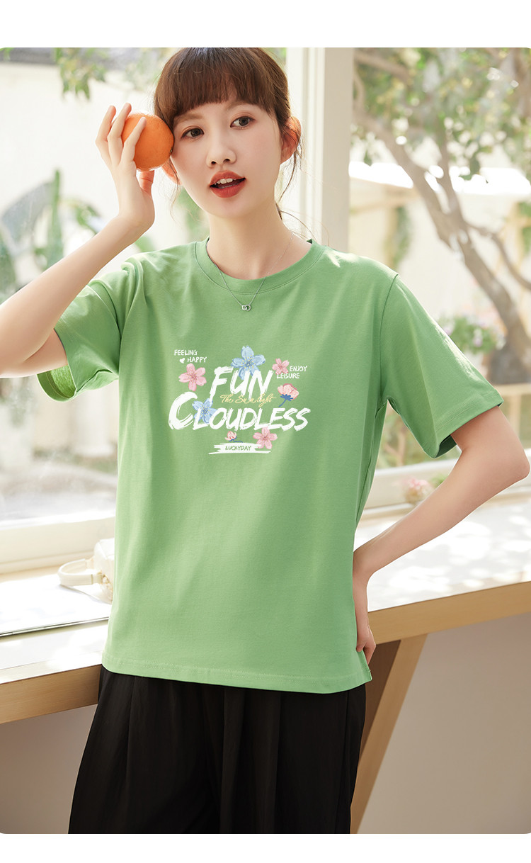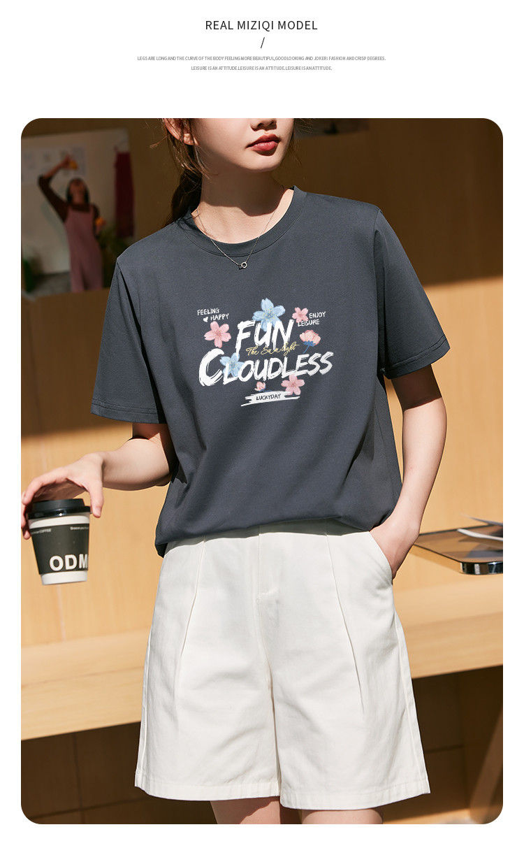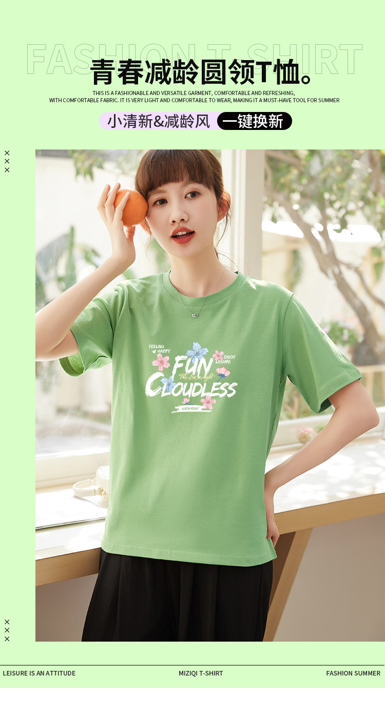 米子旗夏季圆领创意印花女式T恤简约宽松休闲短袖上衣百搭 515738