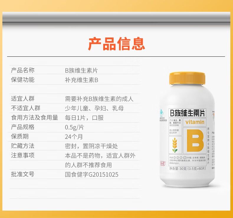 商品名称:养生堂 B族维生素片 成人男女补充维生素B 【120片+60片】礼盒装