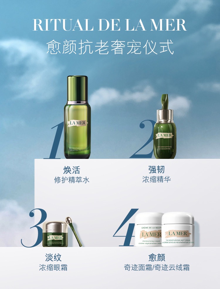 商品名称:La Mer/海蓝之谜 小王炸四件套 精粹水150ml+浓缩精华50ml+海蓝绿眼霜15ml+经典面霜60ml