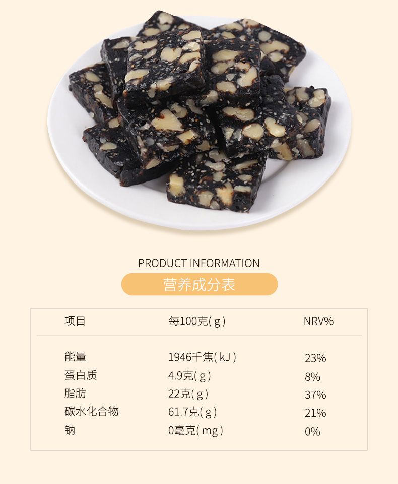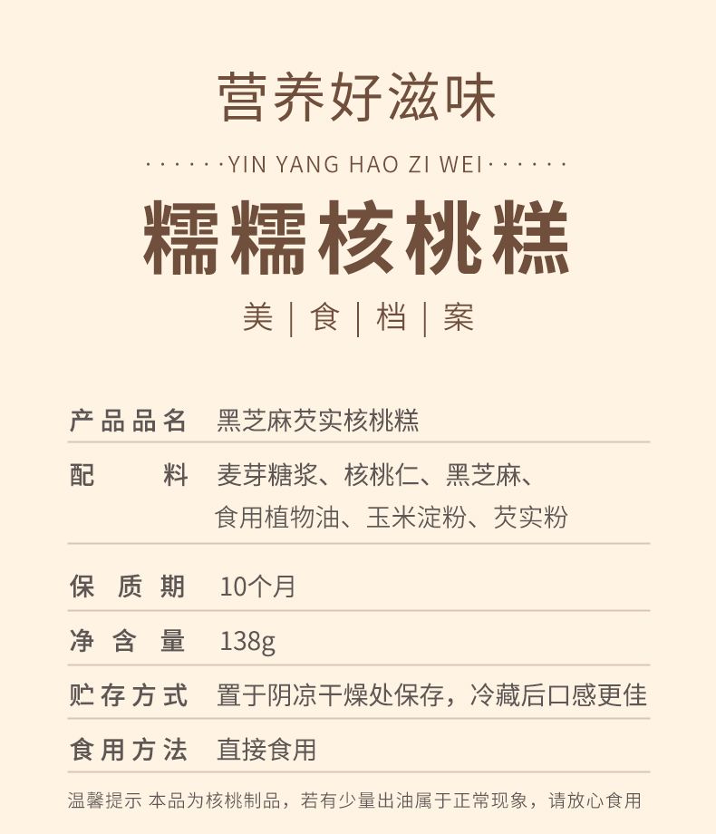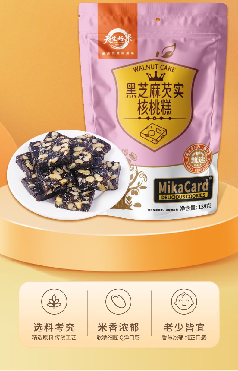 商品名称:天生好果黑芝麻芡实核桃糕276克(138克*2袋)