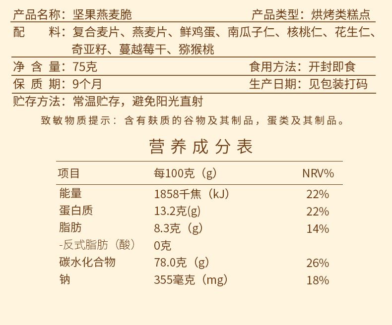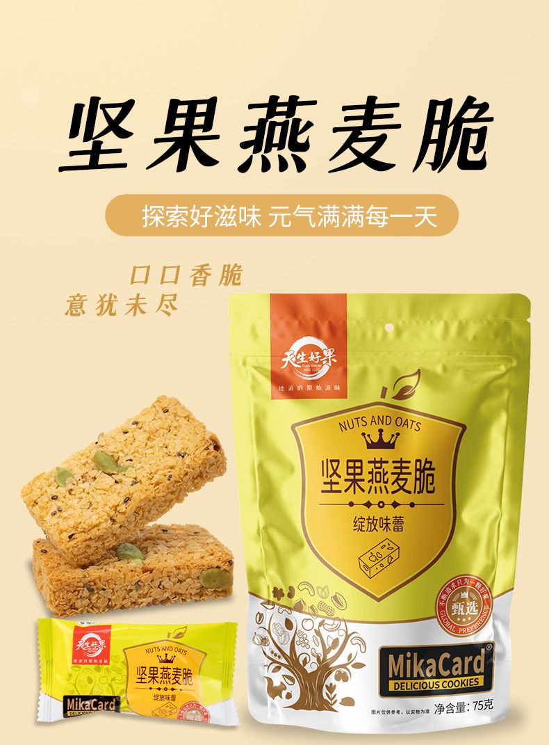 商品名称:天生好果坚果燕麦脆225克(75克*3袋)