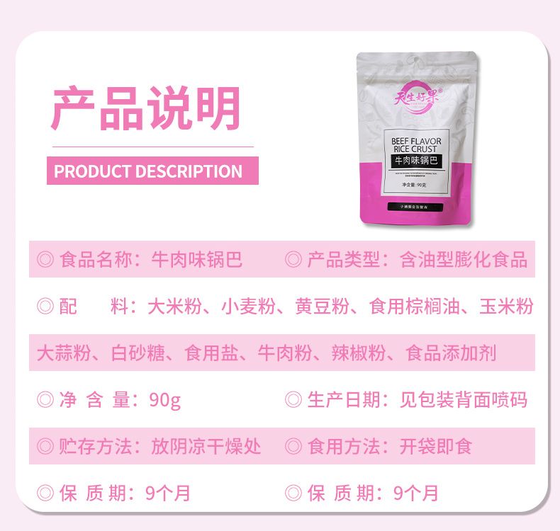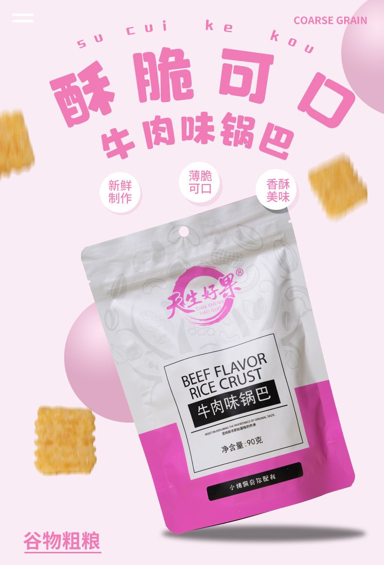 商品名称:天生好果牛肉味锅巴90*4袋