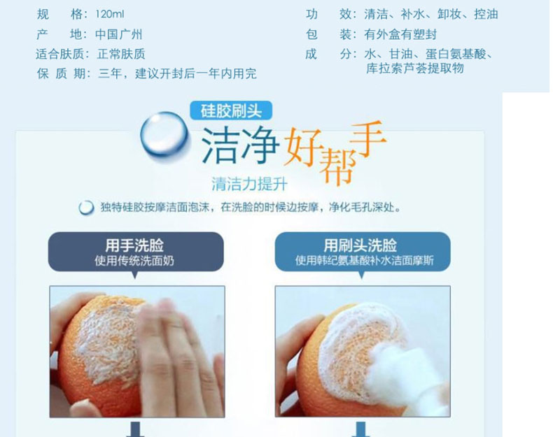 商品名称:Hankey/韩纪 氨基酸补水洁面慕斯 温和清洁水润保湿 120ml