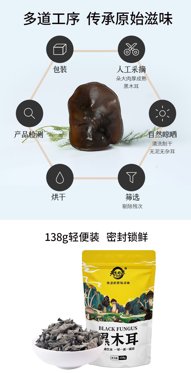 商品名称:天生好果黑木耳138g*2包