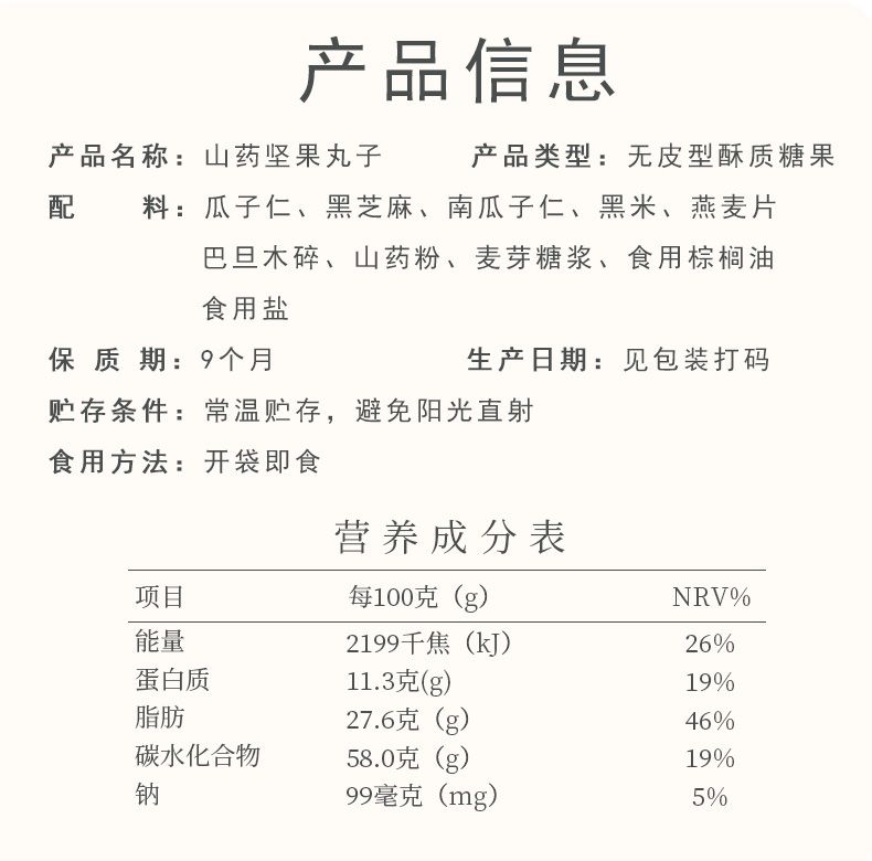 商品名称:天生好果山药坚果丸子225克(75克*3袋)