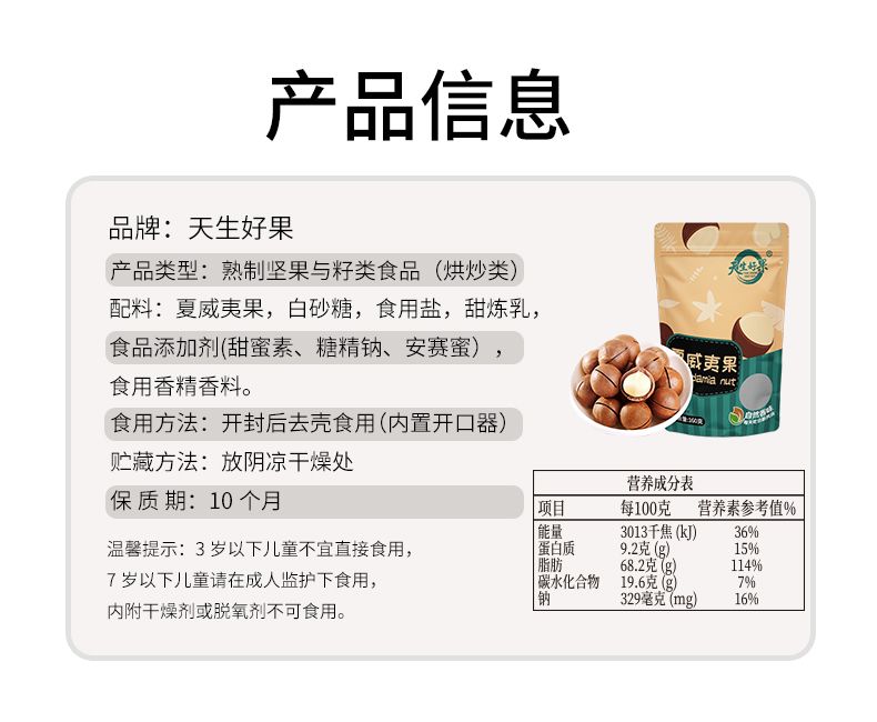 商品名称:天生好果原色夏威夷果160克