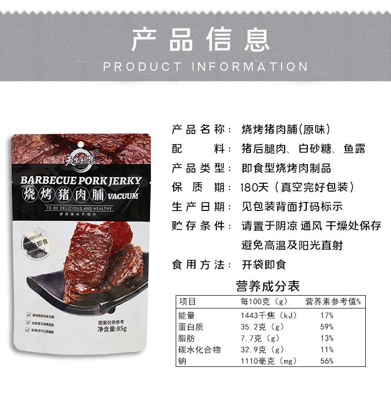 商品名称:天生好果烧烤猪肉脯85克(原味)