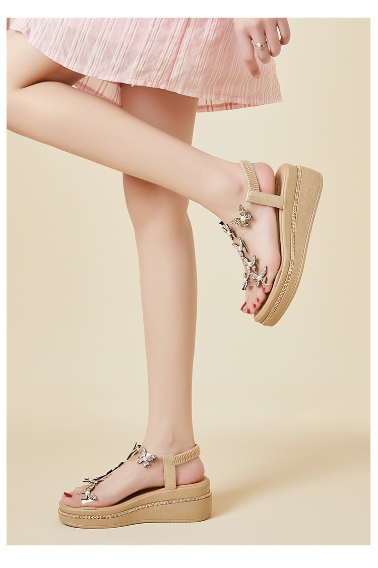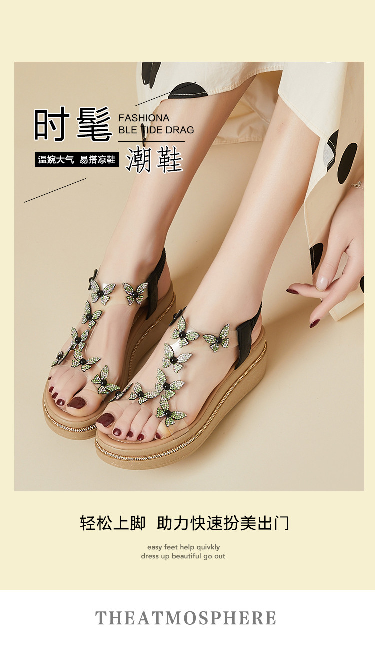 商品名称:【秒增6CM】夏季厚底凉鞋一字带凉鞋夏天凉鞋百搭坡跟凉鞋女鞋 435095
