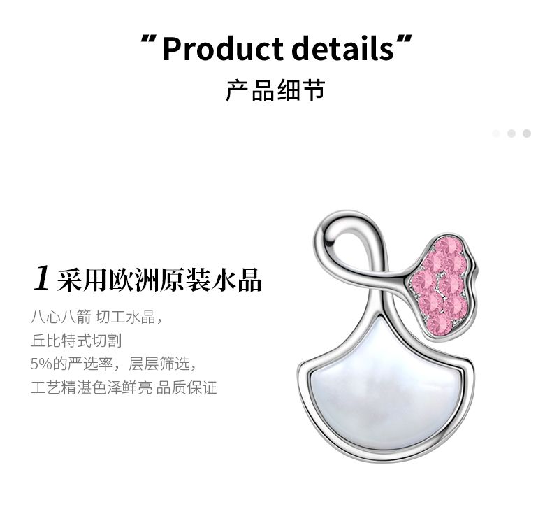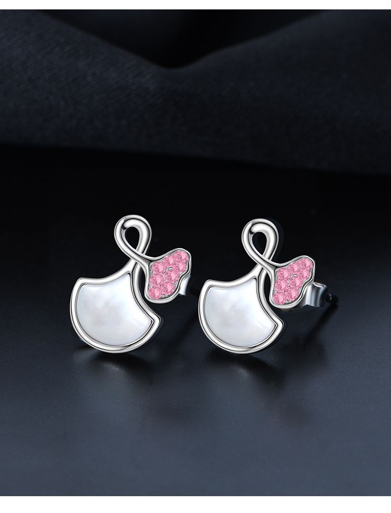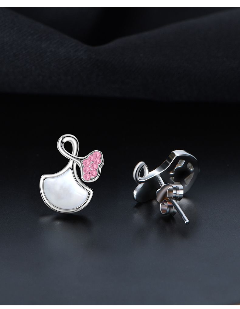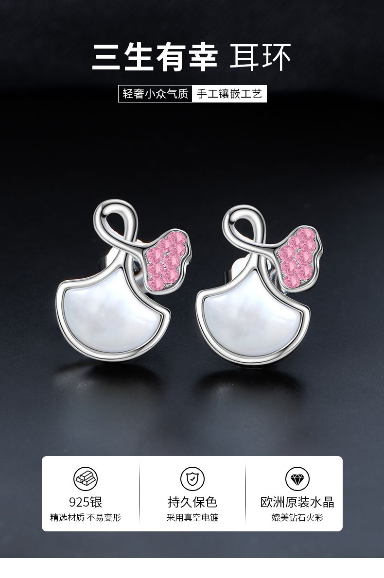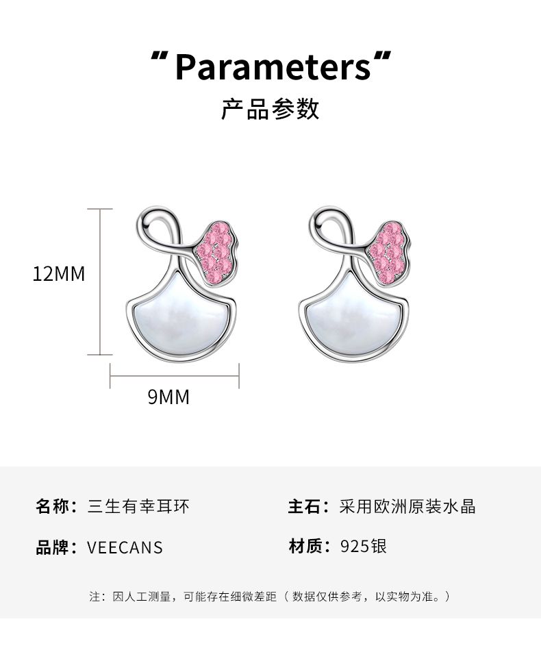 商品名称:VEECANS三生有幸白贝母银杏扇形耳钉2024年新款潮镶嵌水晶设计送女友耳饰