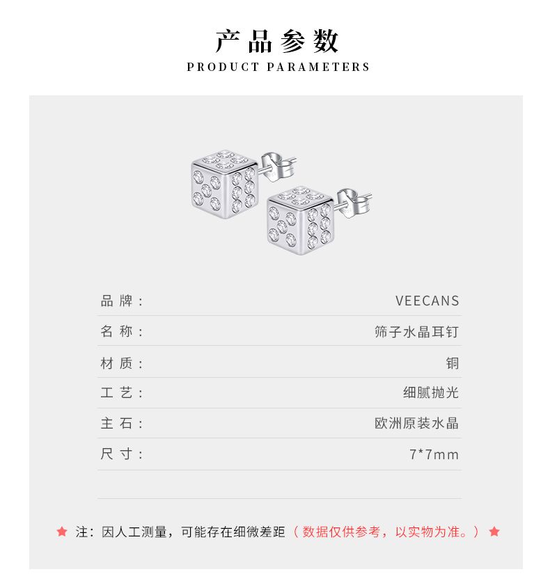 商品名称:VEECANS幸运骰耳钉小众设计感生日礼物送女友