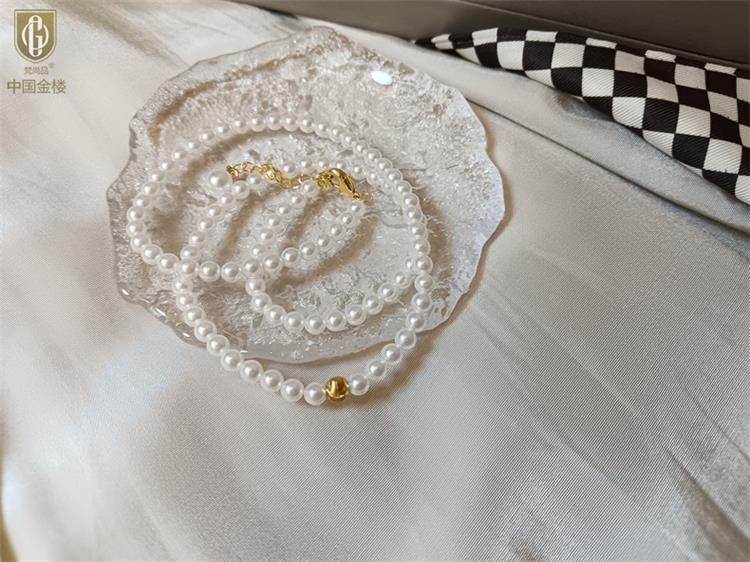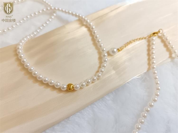 中国金楼梵尚品温婉优雅K金猫眼珠珍珠项链ZZX57311641送礼送女友送长辈生日礼物(下单赠手机贴随机一个)