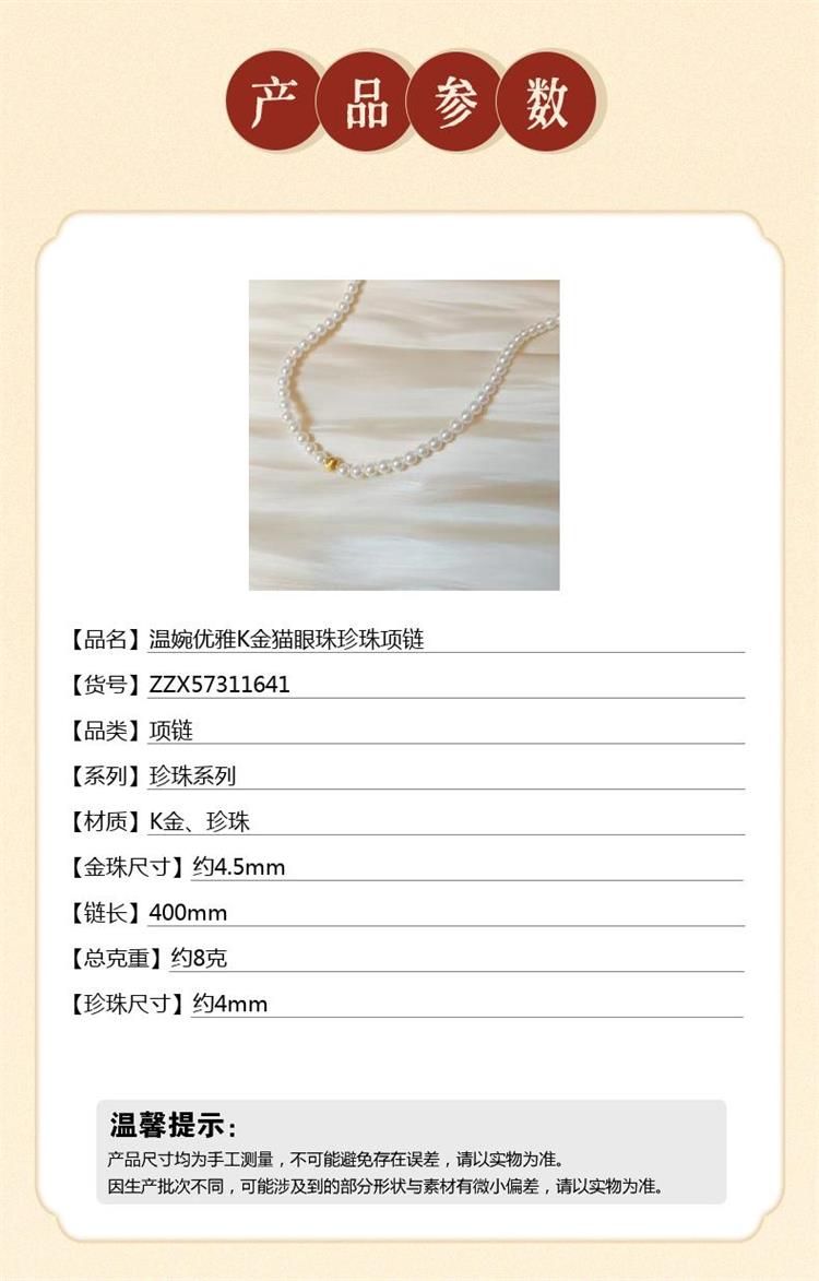 商品名称:中国金楼梵尚品温婉优雅K金猫眼珠珍珠项链ZZX57311641送礼送女友送长辈生日礼物(下单赠手机贴随机一个)