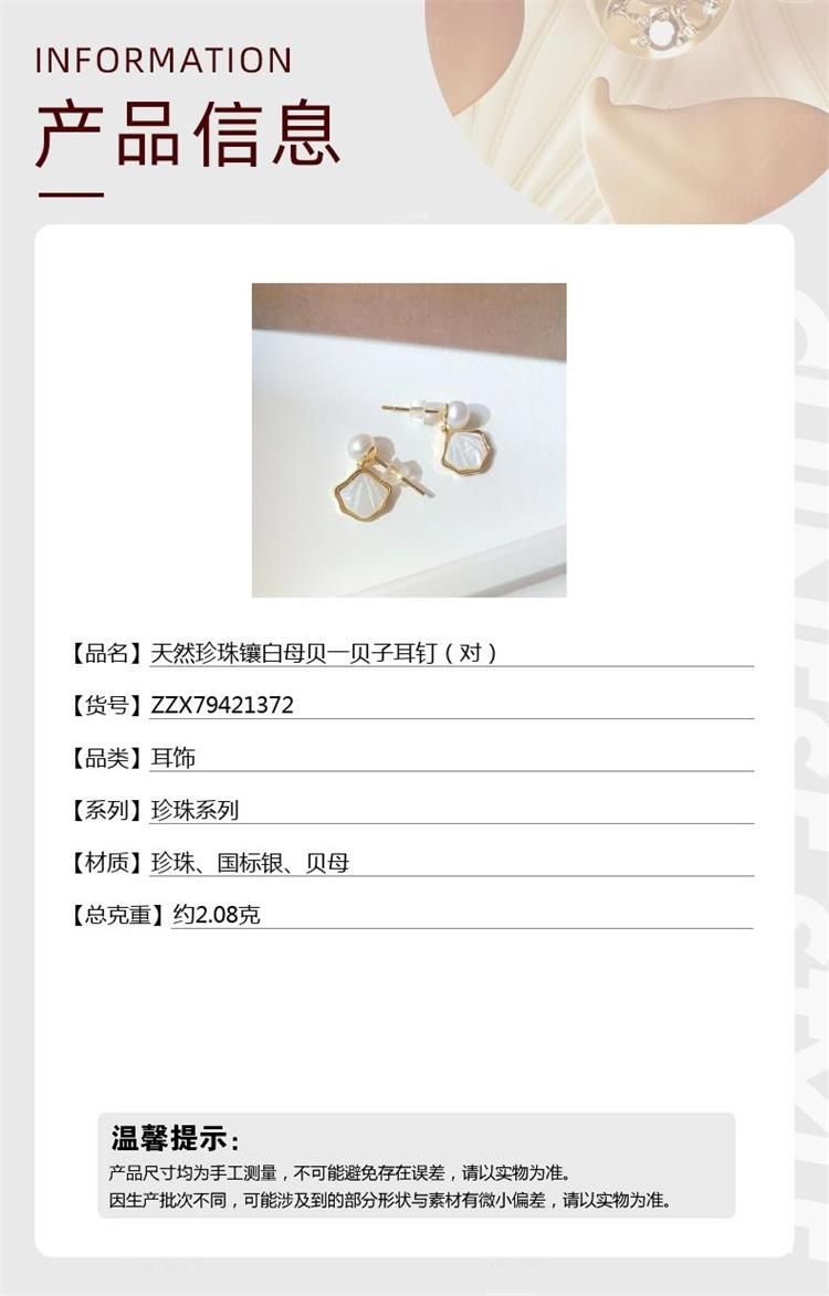 商品名称:中国金楼梵尚品天然珍珠镶白母贝一贝子耳钉(对)ZZX79421372送礼送女友送长辈生日礼物