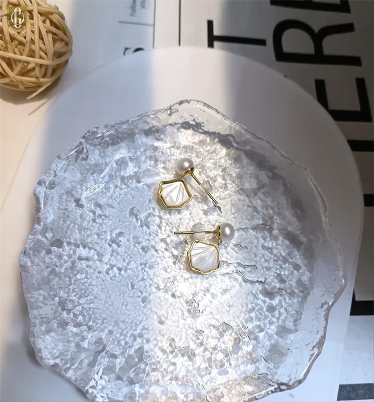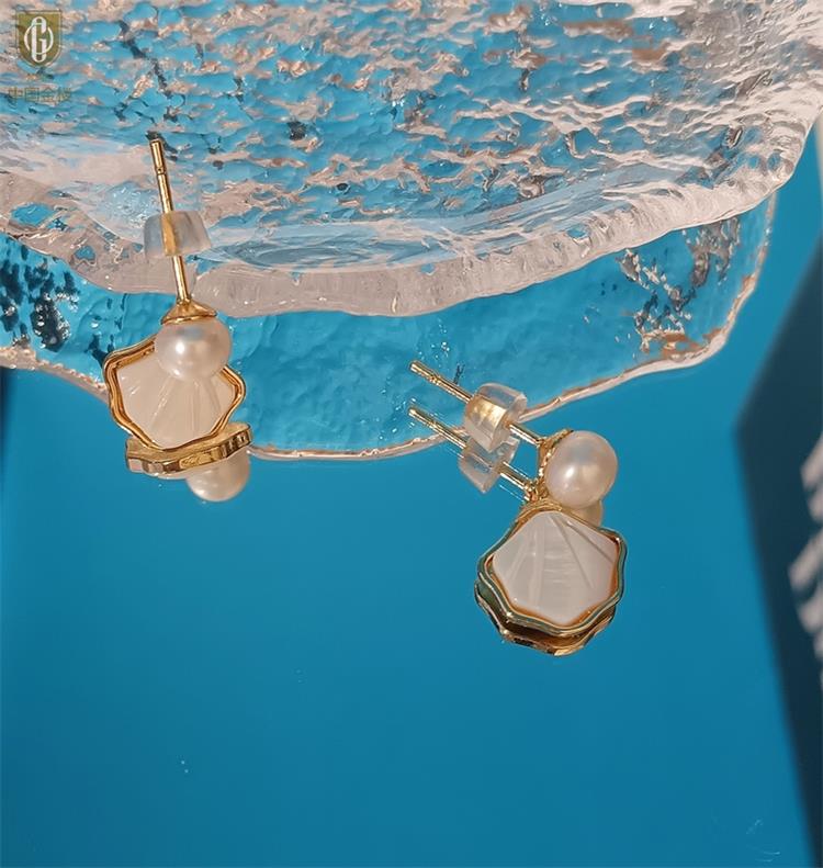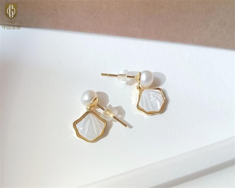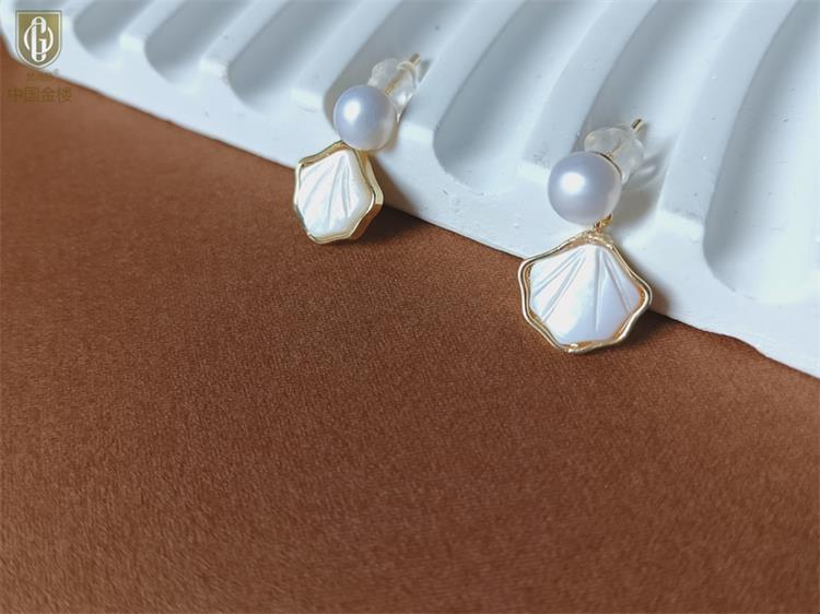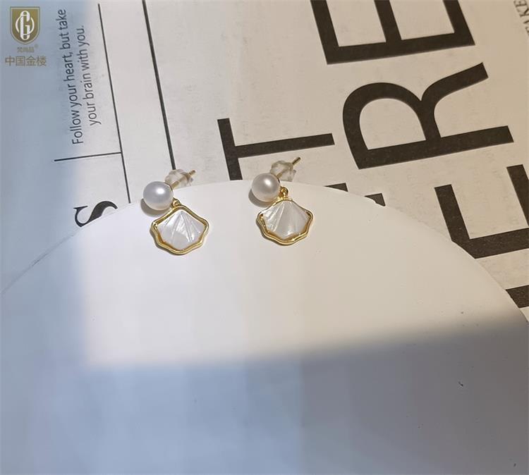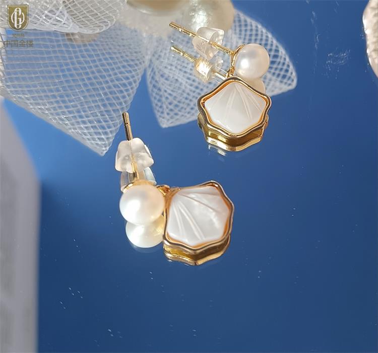 中国金楼梵尚品天然珍珠镶白母贝一贝子耳钉(对)ZZX79421372送礼送女友送长辈生日礼物