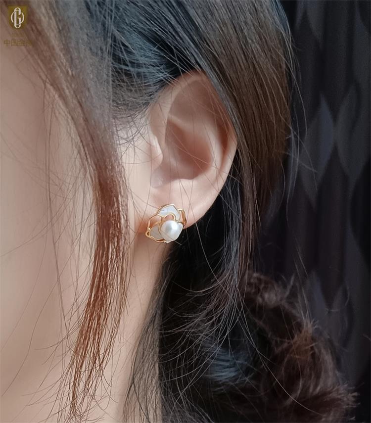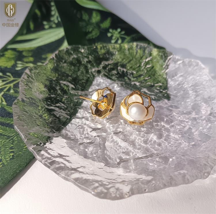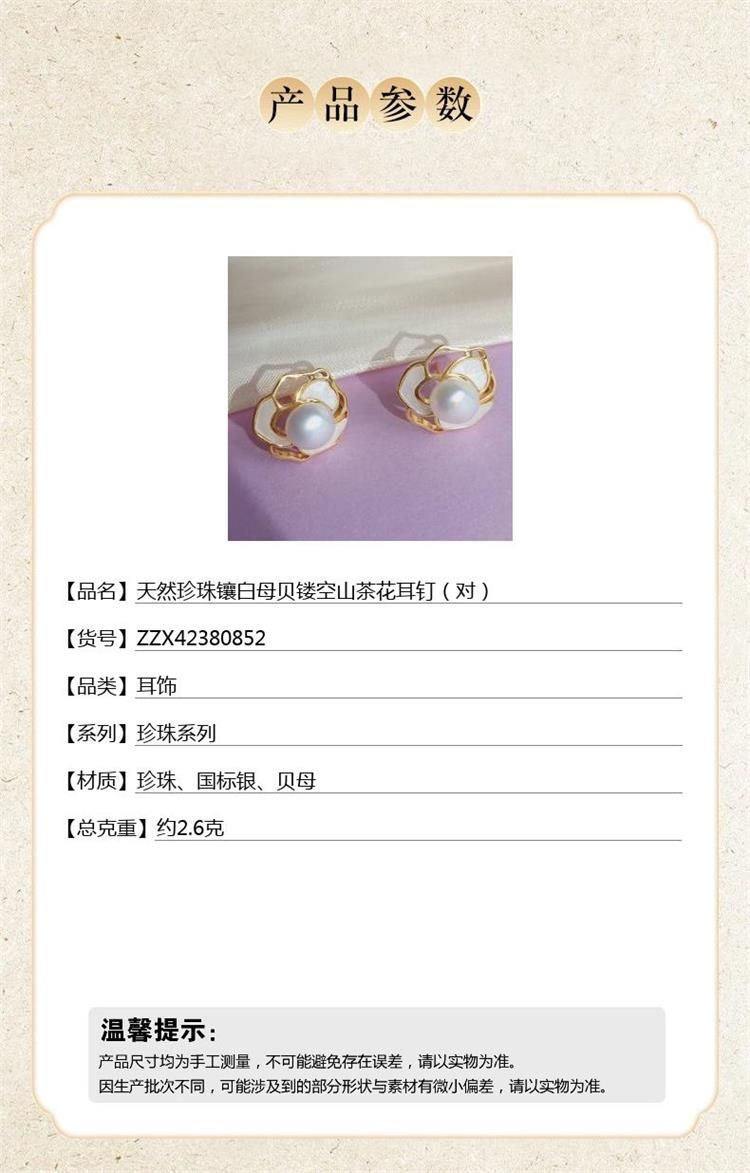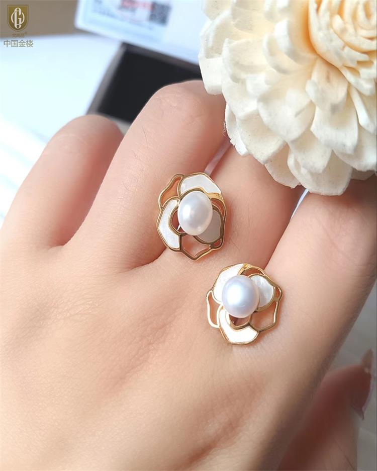 商品名称:中国金楼梵尚品天然珍珠镶白母贝镂空山茶花耳钉(对)ZZX42380852送礼送女友送长辈生日礼物
