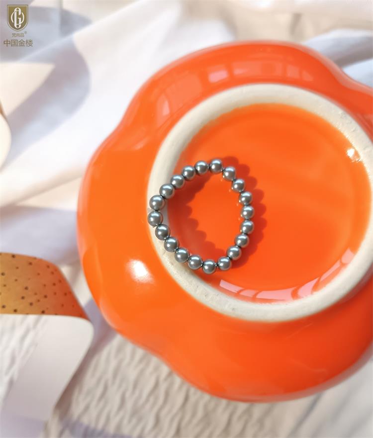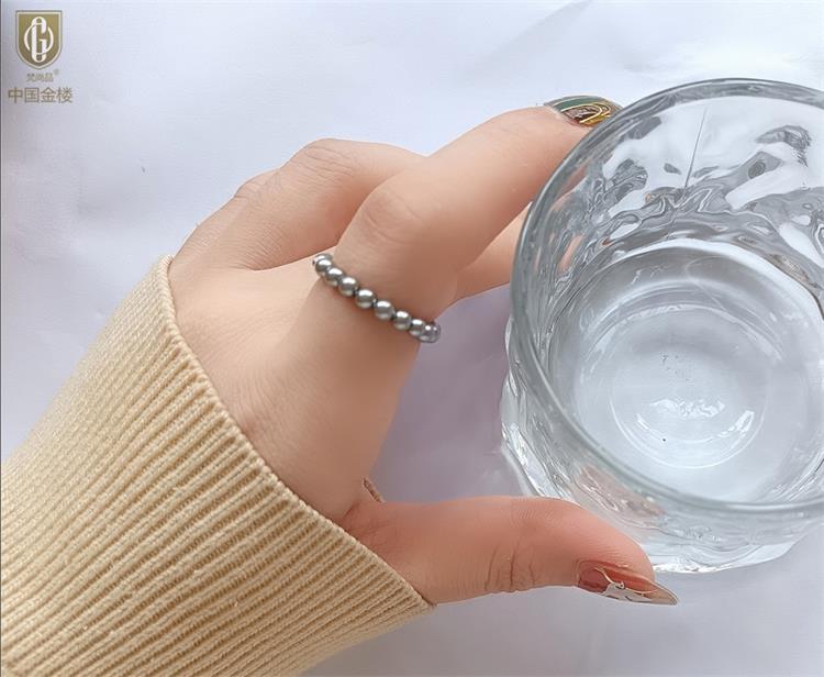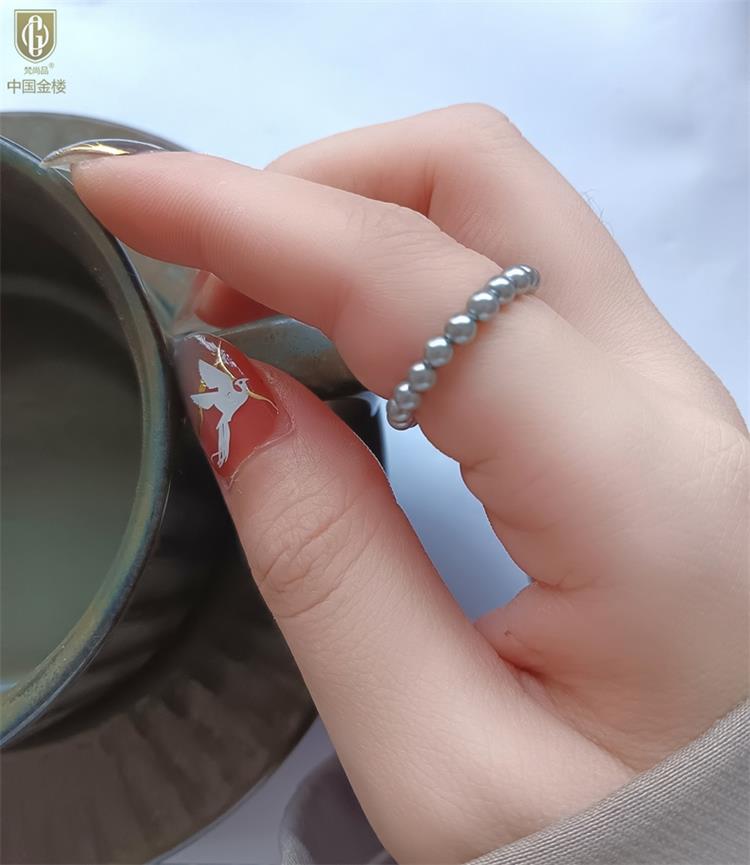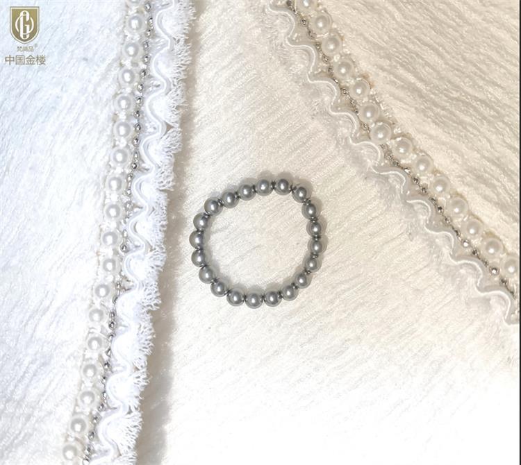 中国金楼梵尚品奥地利进口正圆极光无暇真多麻灰珍珠戒指ZZX55609138送礼送女友送长辈生日礼物